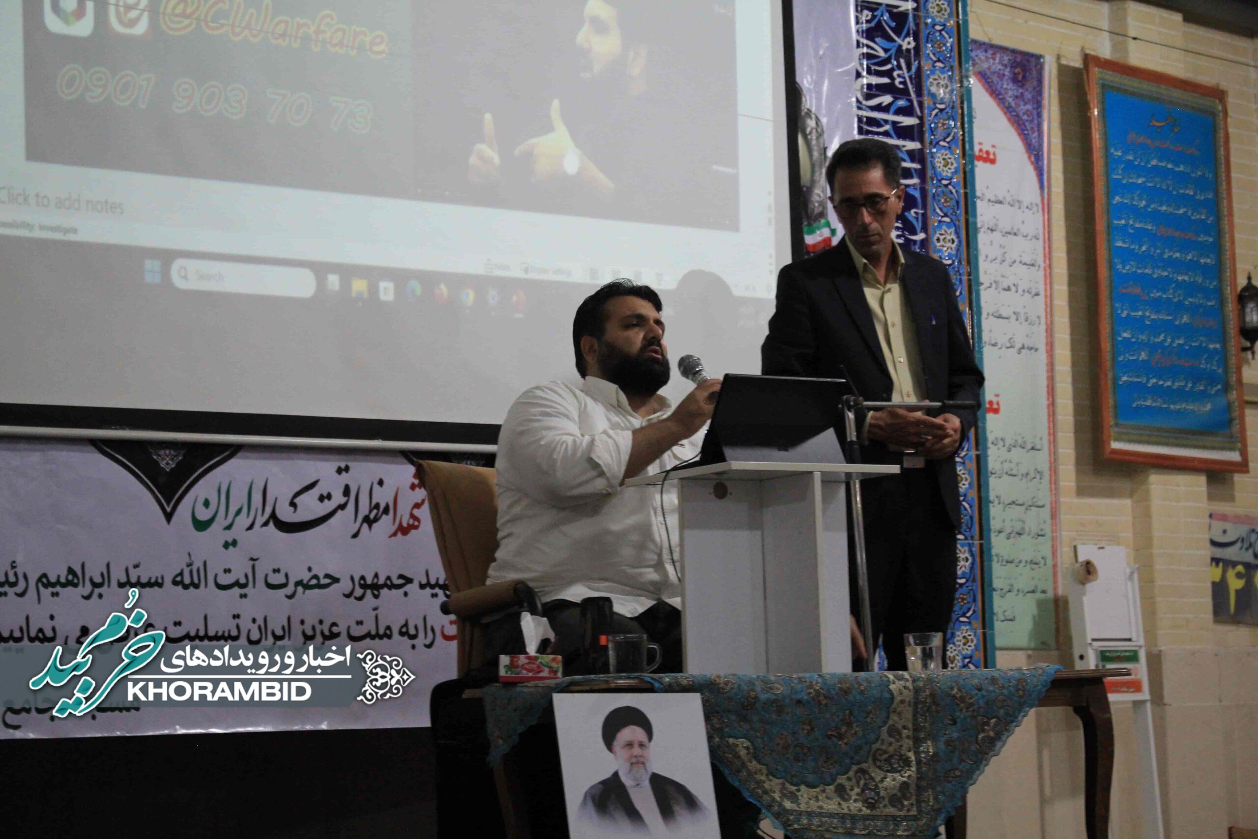 استاد محمد جوانی، استاد دانشگاه امام حسین (ع) و کارشناس برجسته حوزه علوم شناختی و جنگ شناختی، بهعنوان سخنران ویژه مراسم، به تبیین ابعاد شخصیتی و نقش برجسته شهید رئیسی در جهاد تبیین، خدمترسانی و مبارزه با جنگ ترکیبی دشمن پرداخت. وی همچنین با اشاره به اهمیت شناخت ابزارهای جنگ نرم و شناختی، بر ضرورت هوشیاری آحاد جامعه بهویژه جوانان تأکید کرد.
