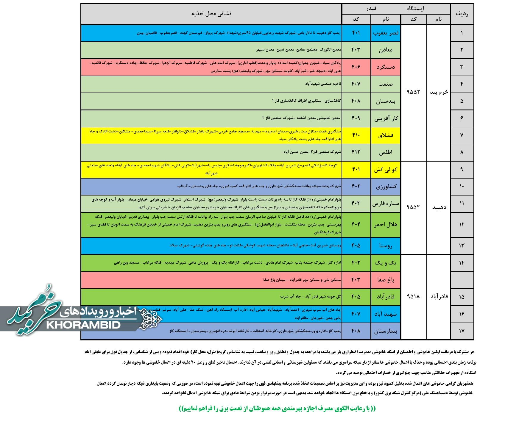 برنامه جدید خاموشی مدیریت توزیع برق شهرستان خرم بید