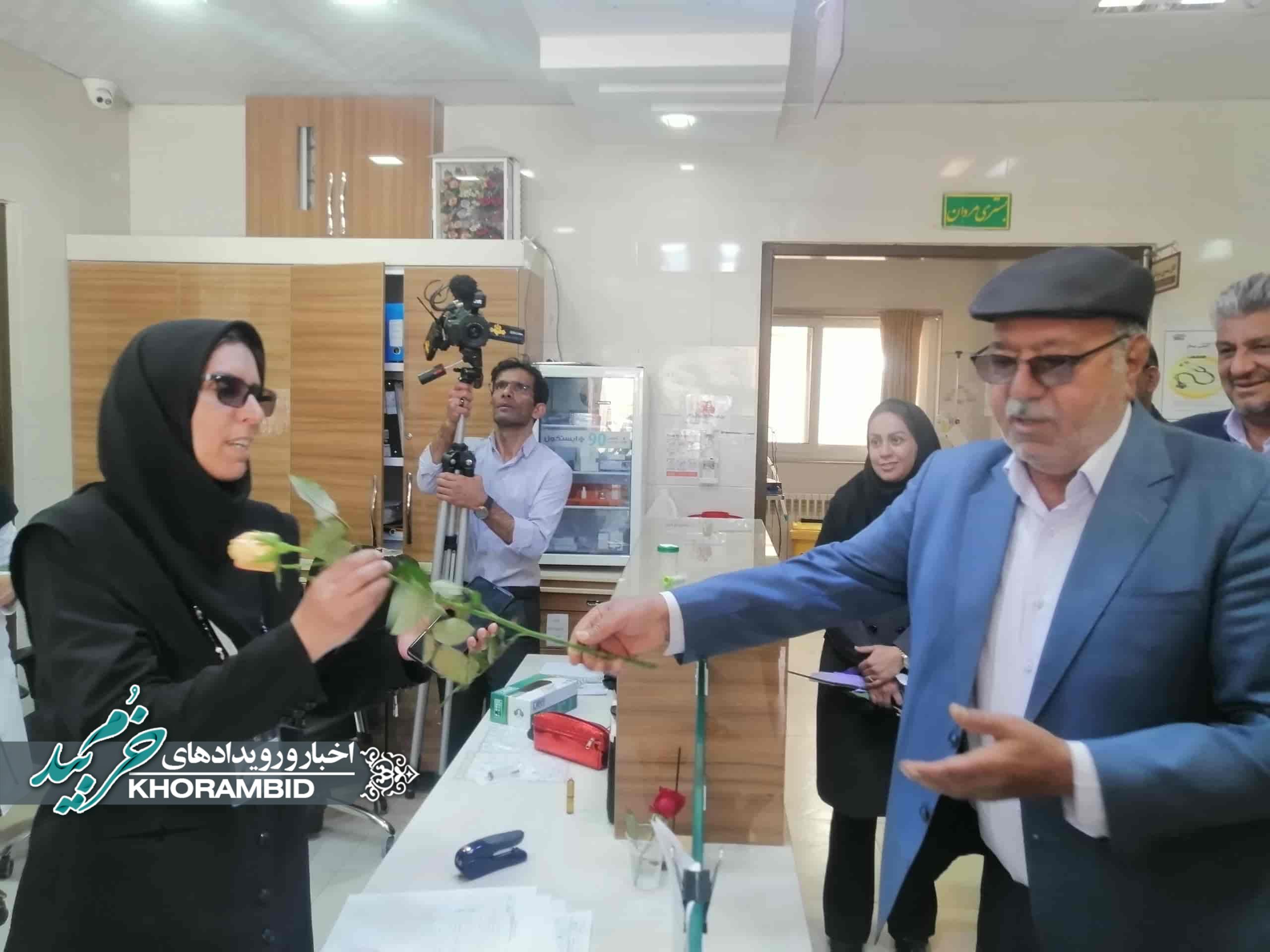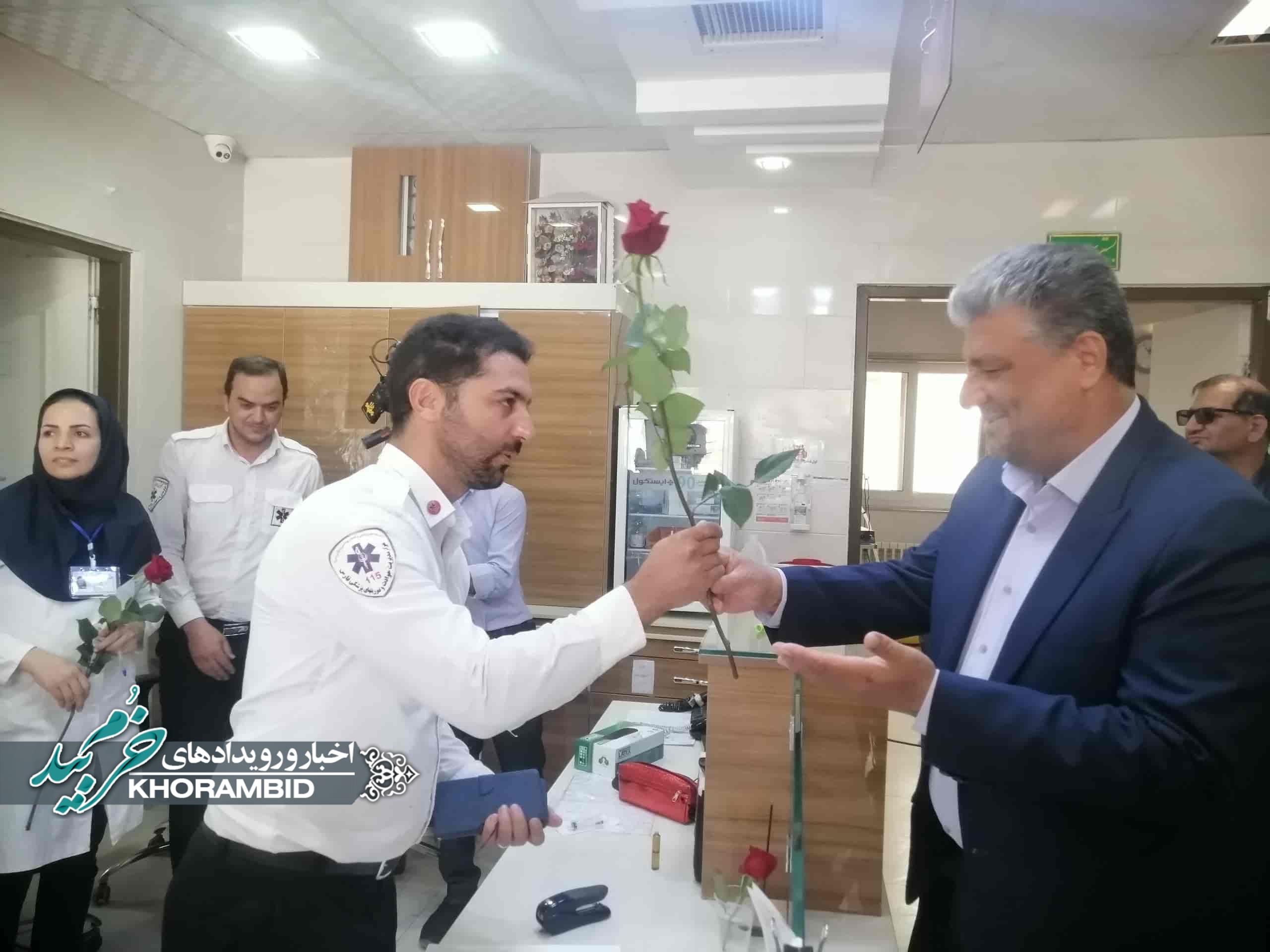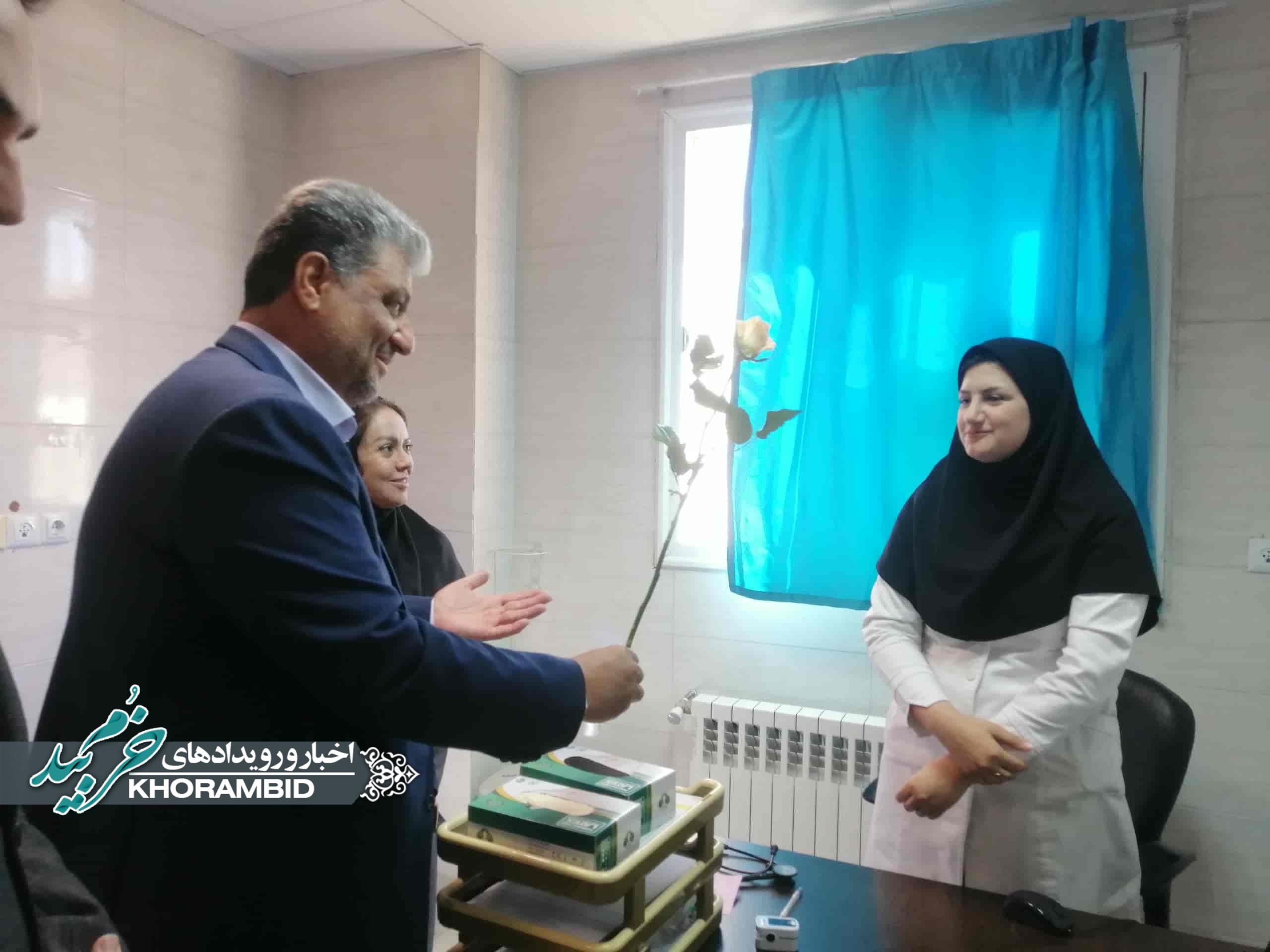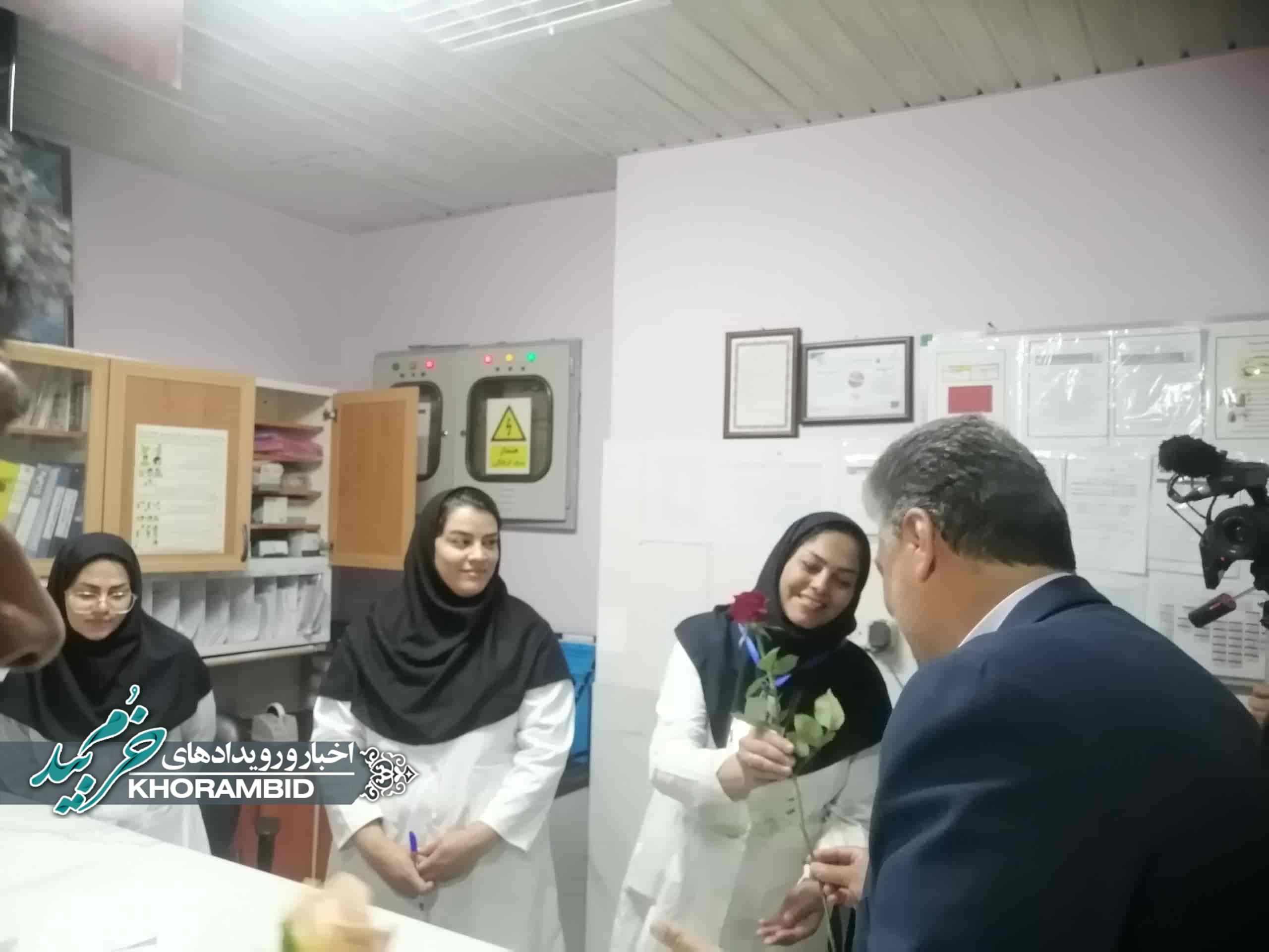 در ادامه، از پرستاران بیمارستان حضرت ولیعصر(عج) شهرستان خرمبید توسط فرماندار شهرستان و مسئولین همراه، با اهدای گل، تجلیل به عمل آمد.