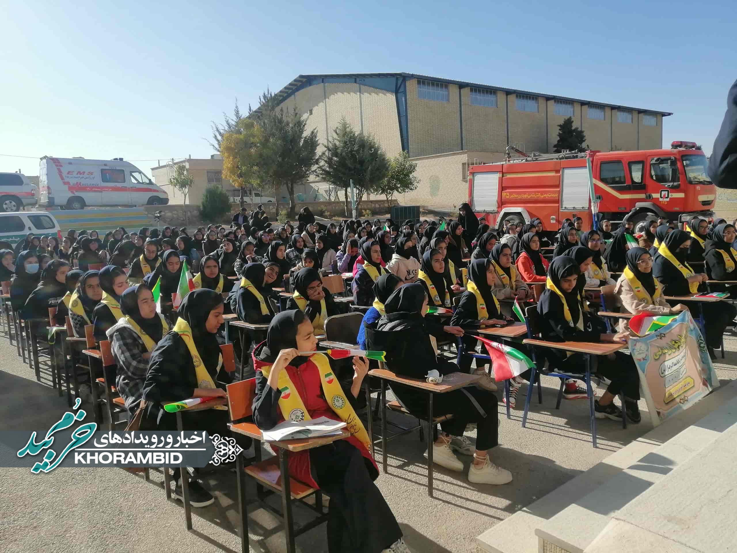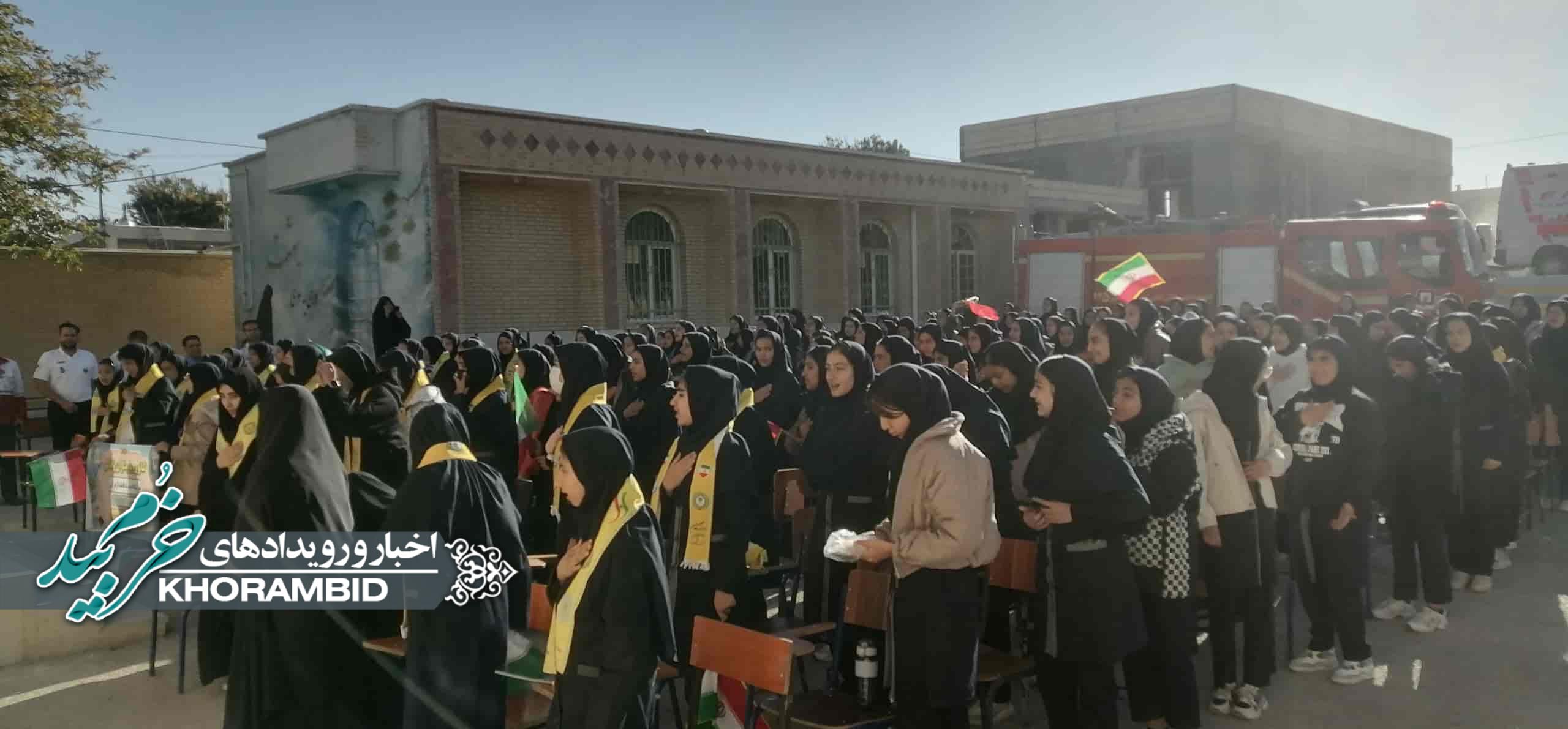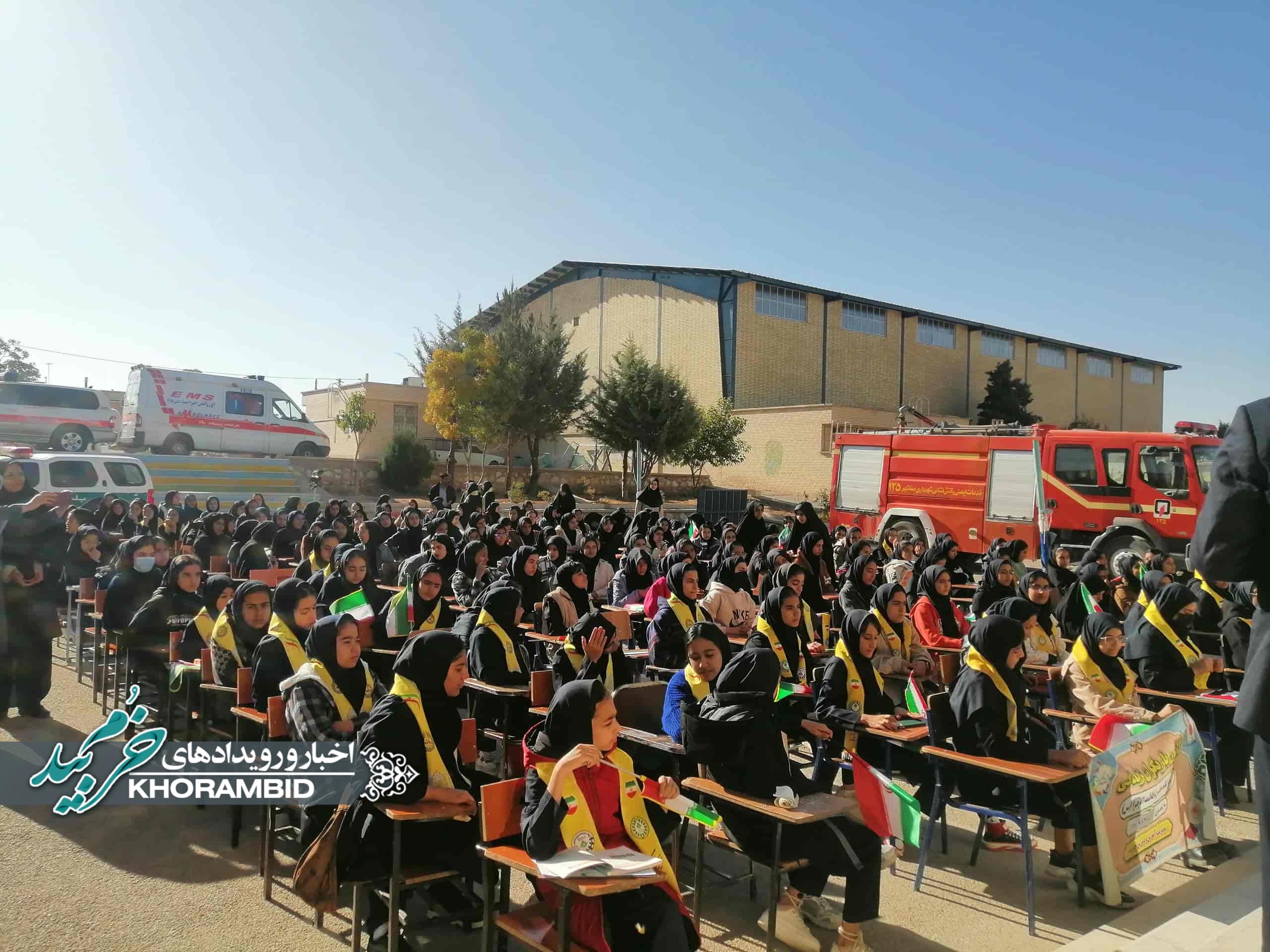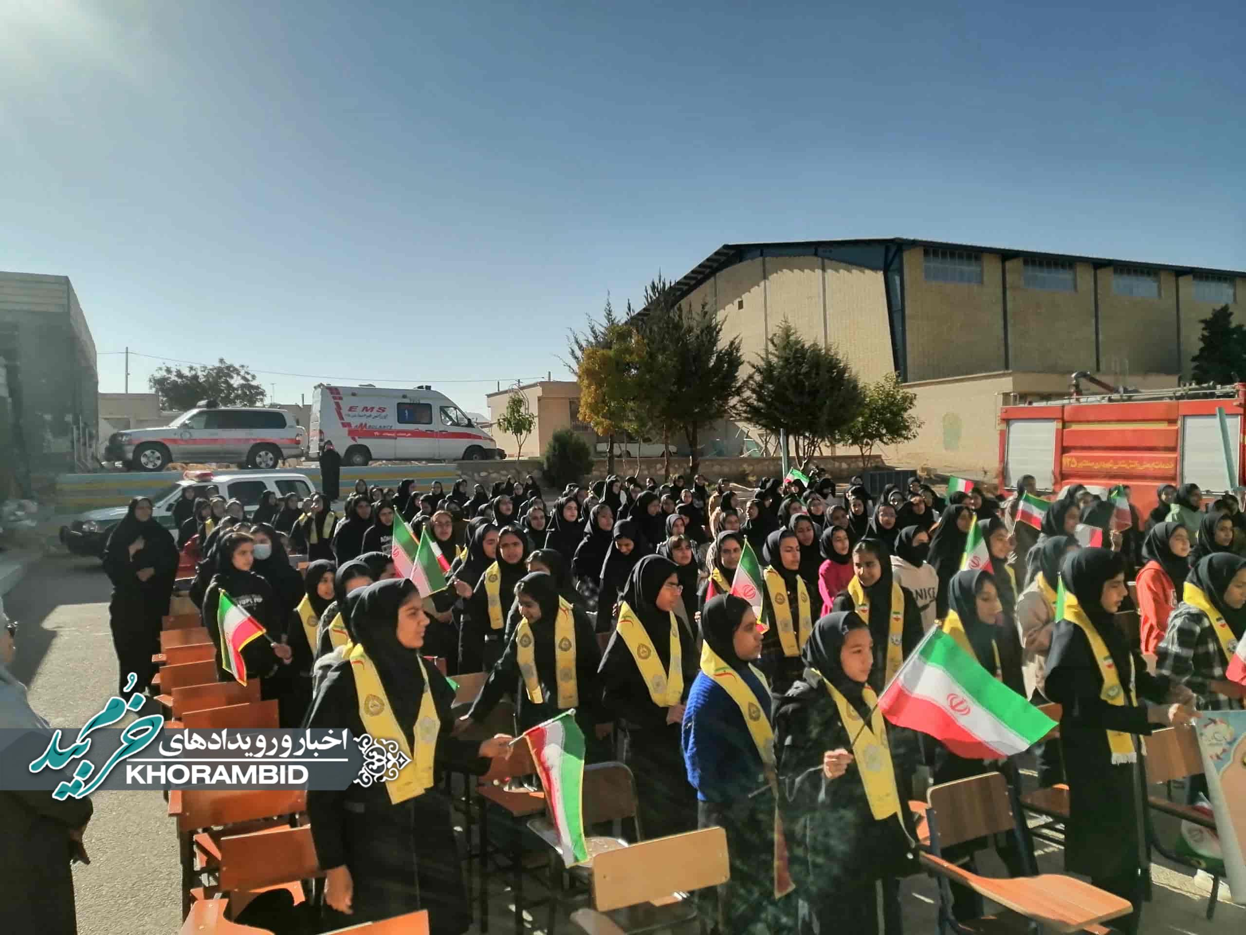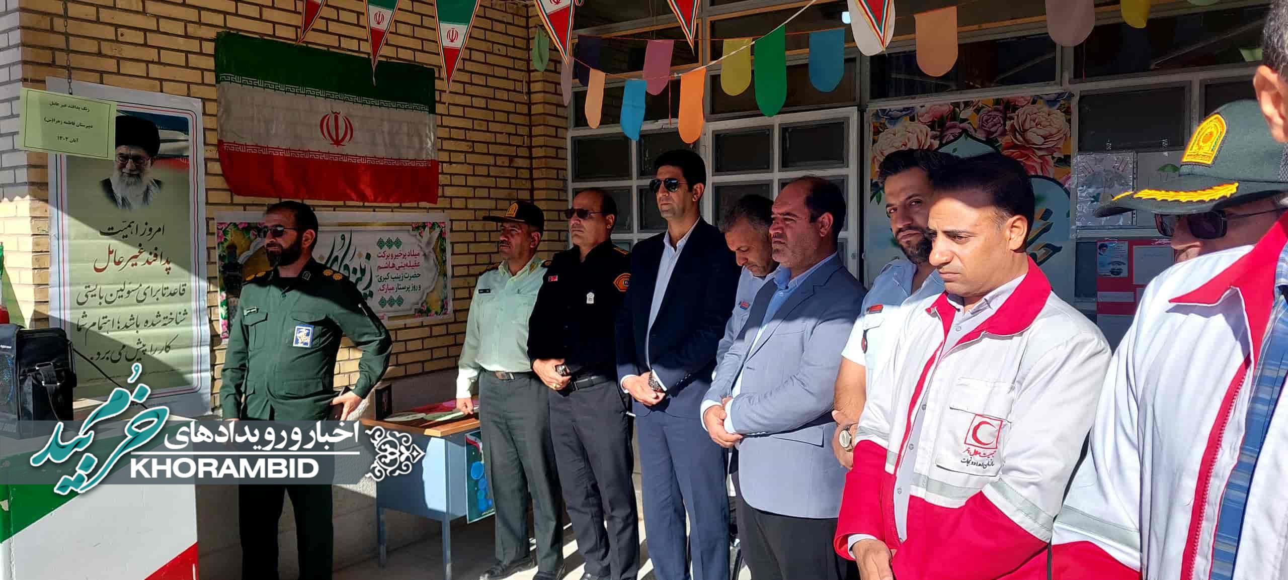 به گزارش روابط عمومی آموزش و پرورش شهرستان خرم بید، همزمان با آغاز هفته نکوداشت پدافند غیرعامل، زنگ پدافند غیرعامل با حضور مجتبی امیری معاون سیاسی، امنیتی و اجتماعی فرمانداری خرمبید، نمایندگانی از سپاه پاسداران انقلاب اسلامی، نیروی انتظامی، آتشنشانی، جمعیت هلالاحمر و اورژانس، در آموزشگاه دخترانه متوسطه دوم فاطمهالزهرا(س) نواخته شد.