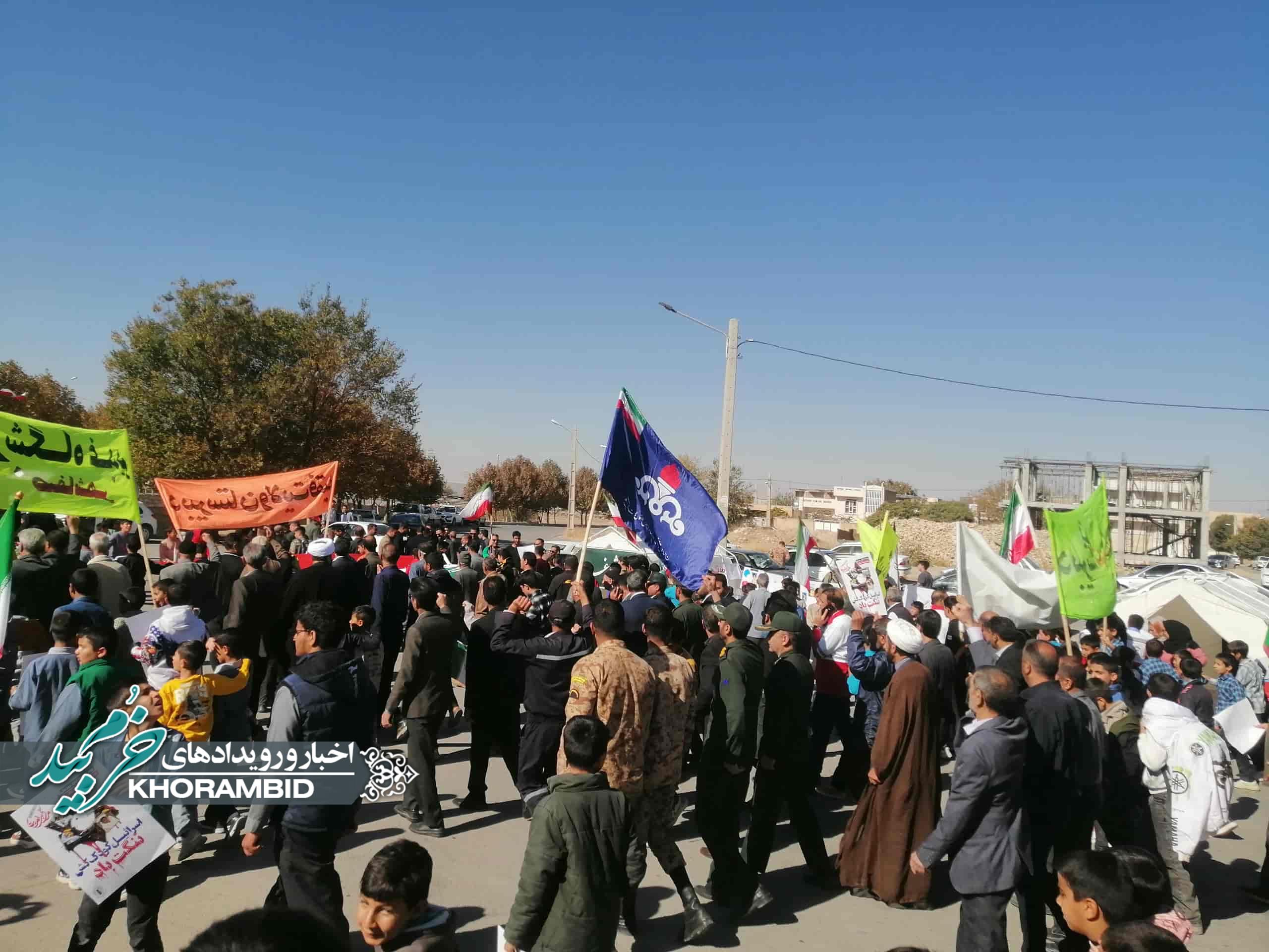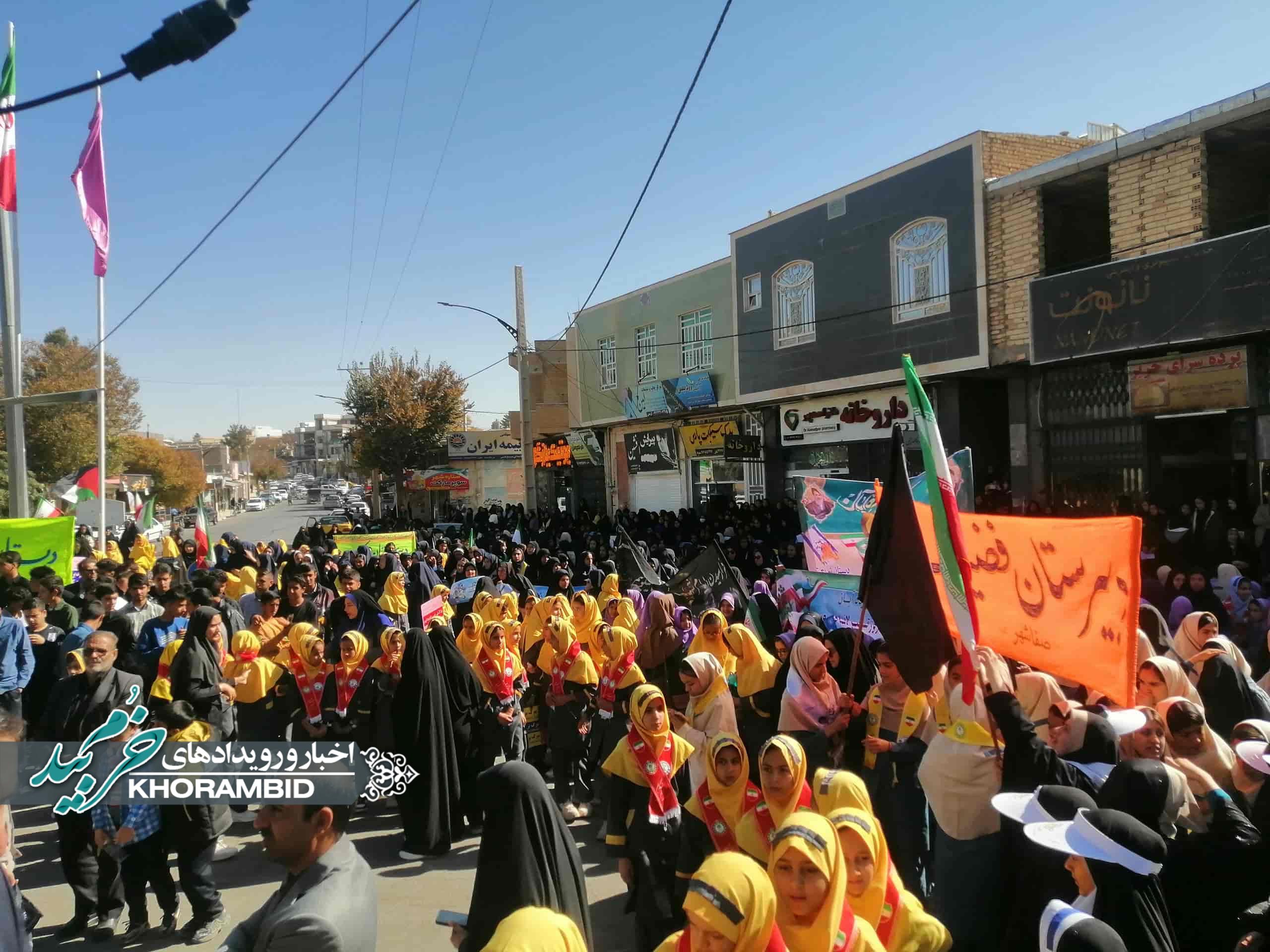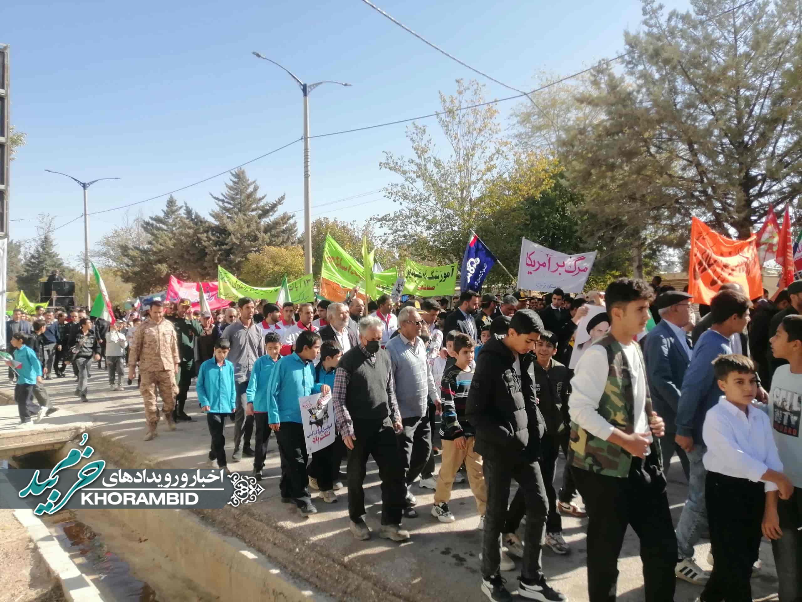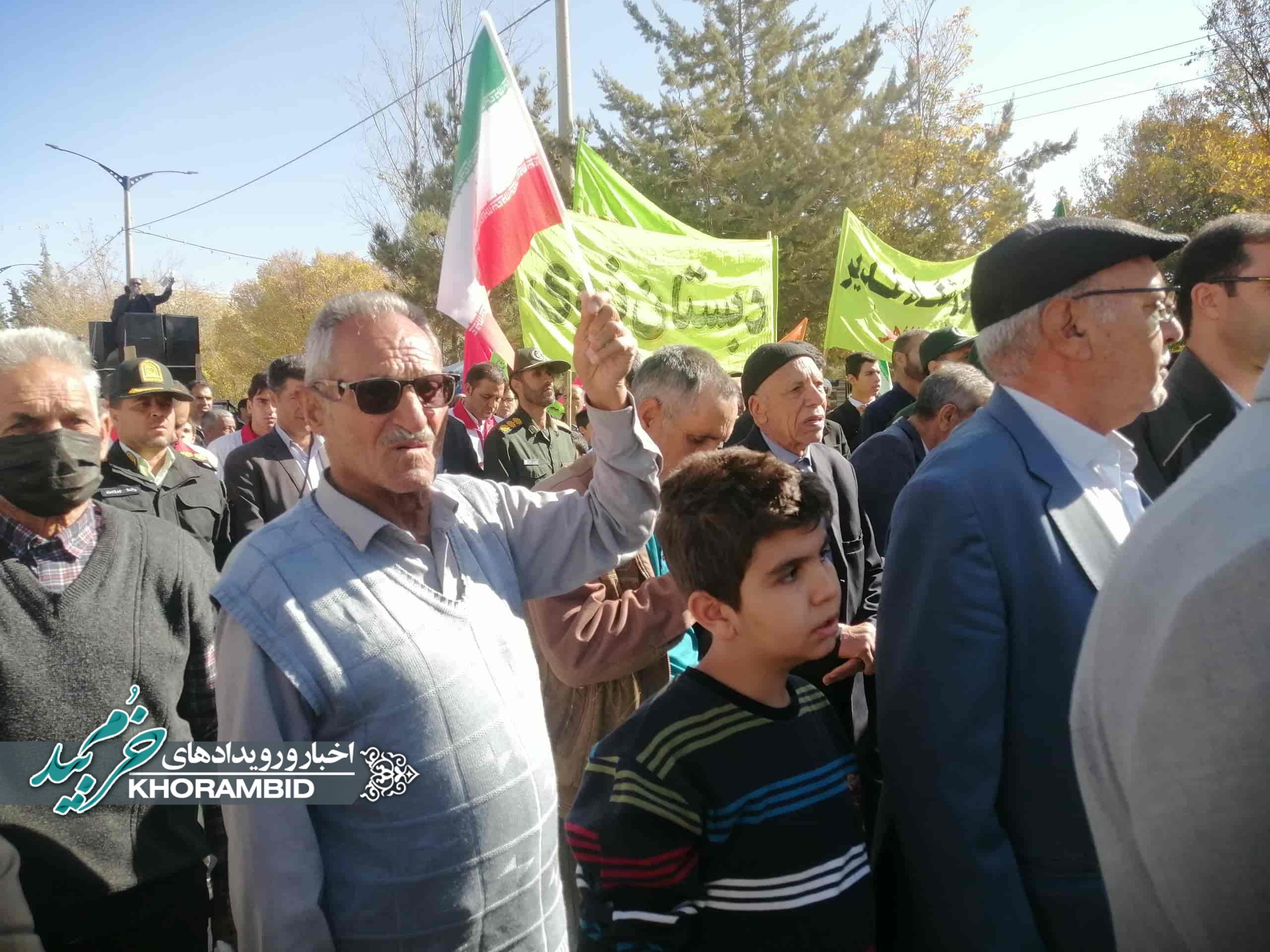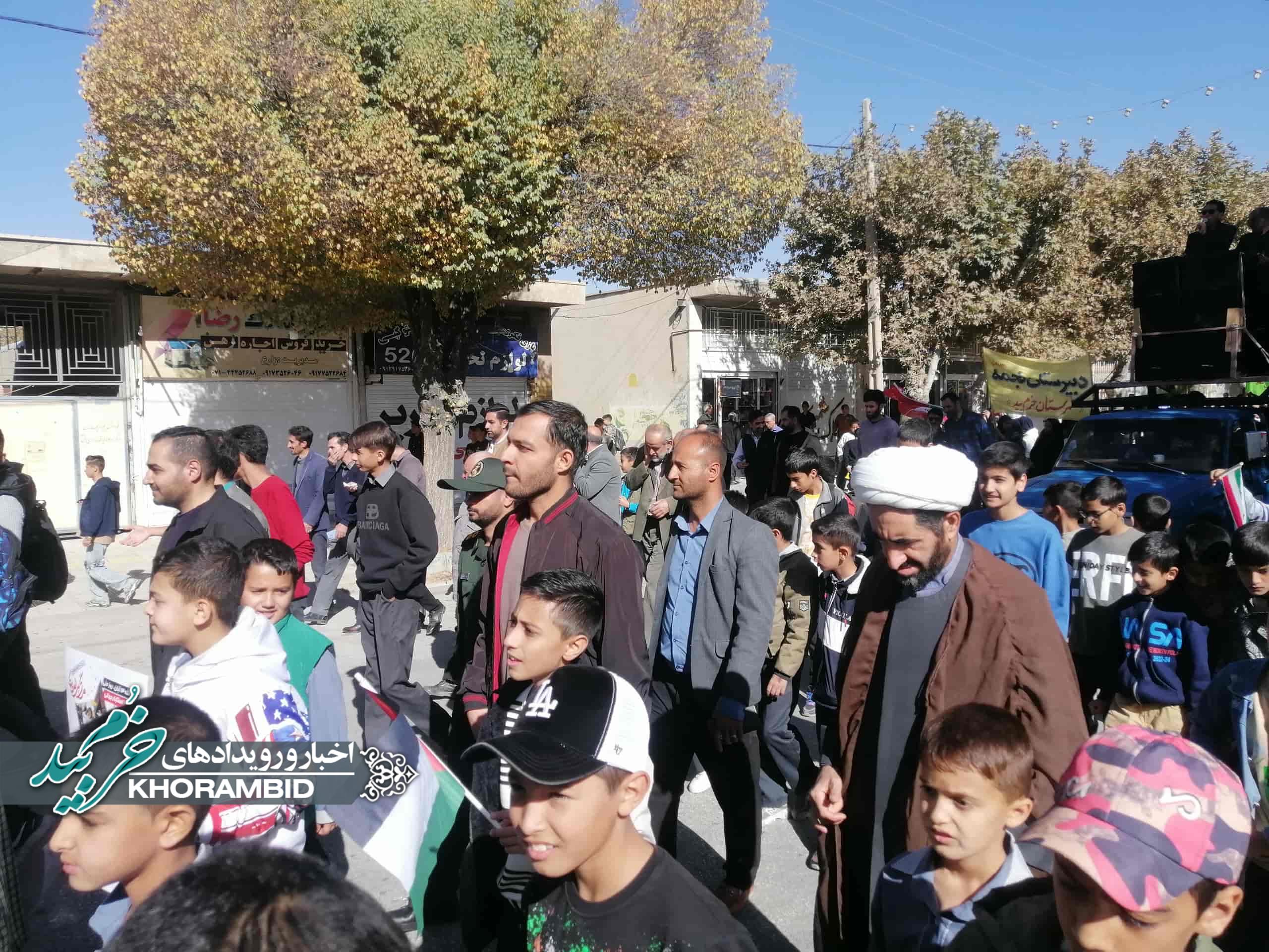 در پایان راهپیمایی، قطعنامه سراسری روز ۱۳ آبان با فریادهای «مرگ بر آمریکا» و «مرگ بر اسرائیل» توسط مردم همیشه در صحنه شهرستان خرمبید قرائت و مورد تأیید شرکتکنندگان قرار گرفت.