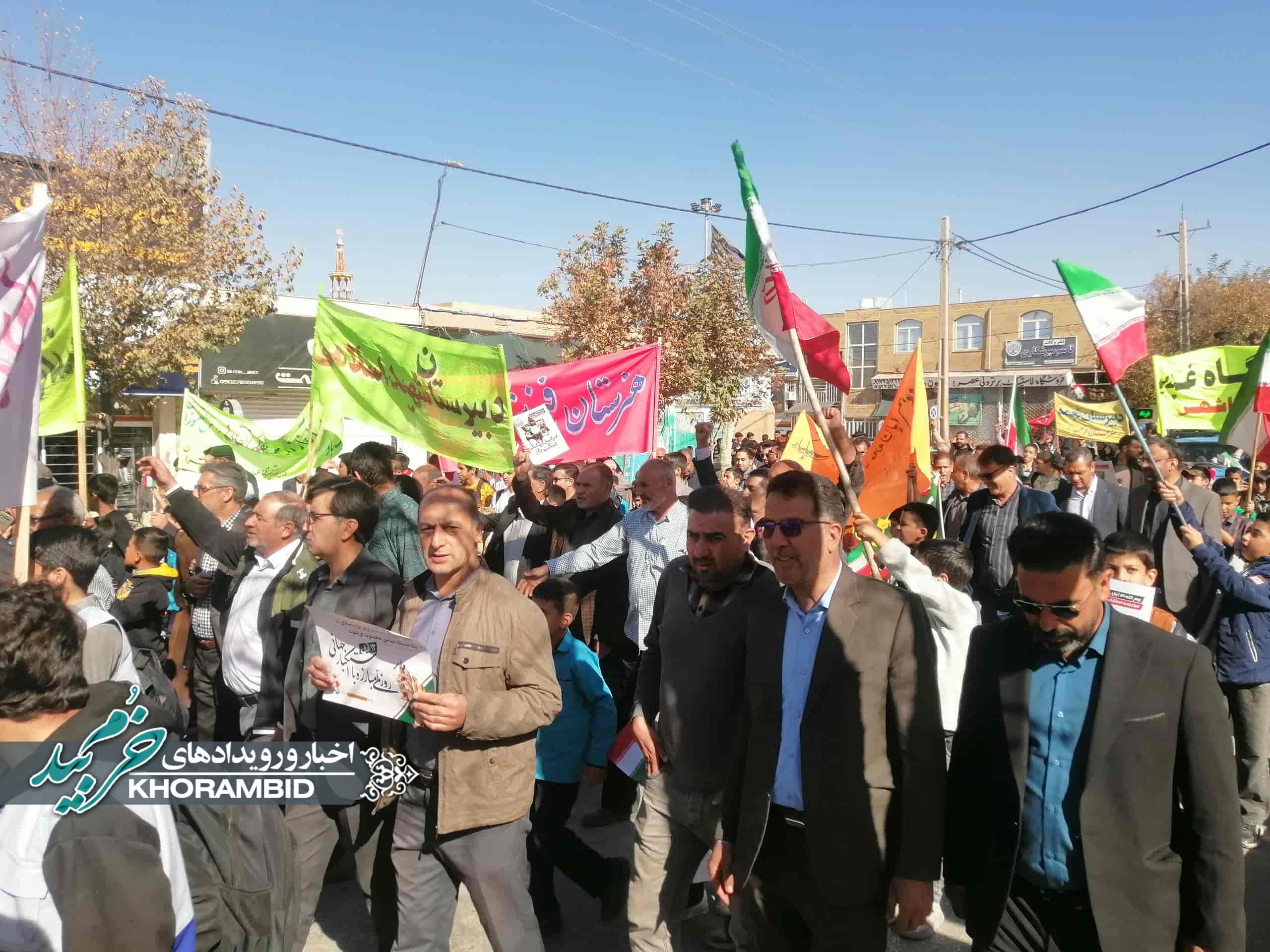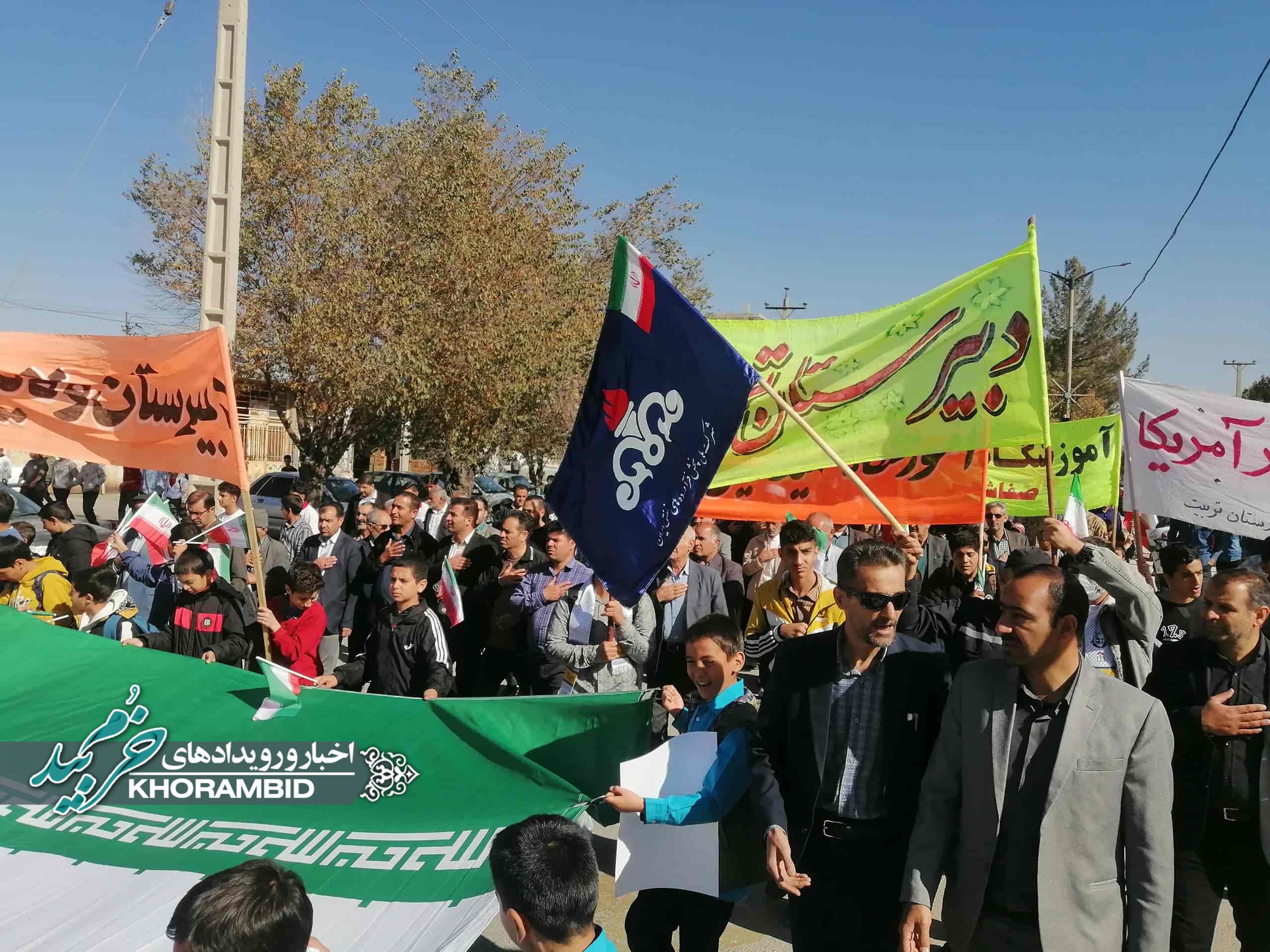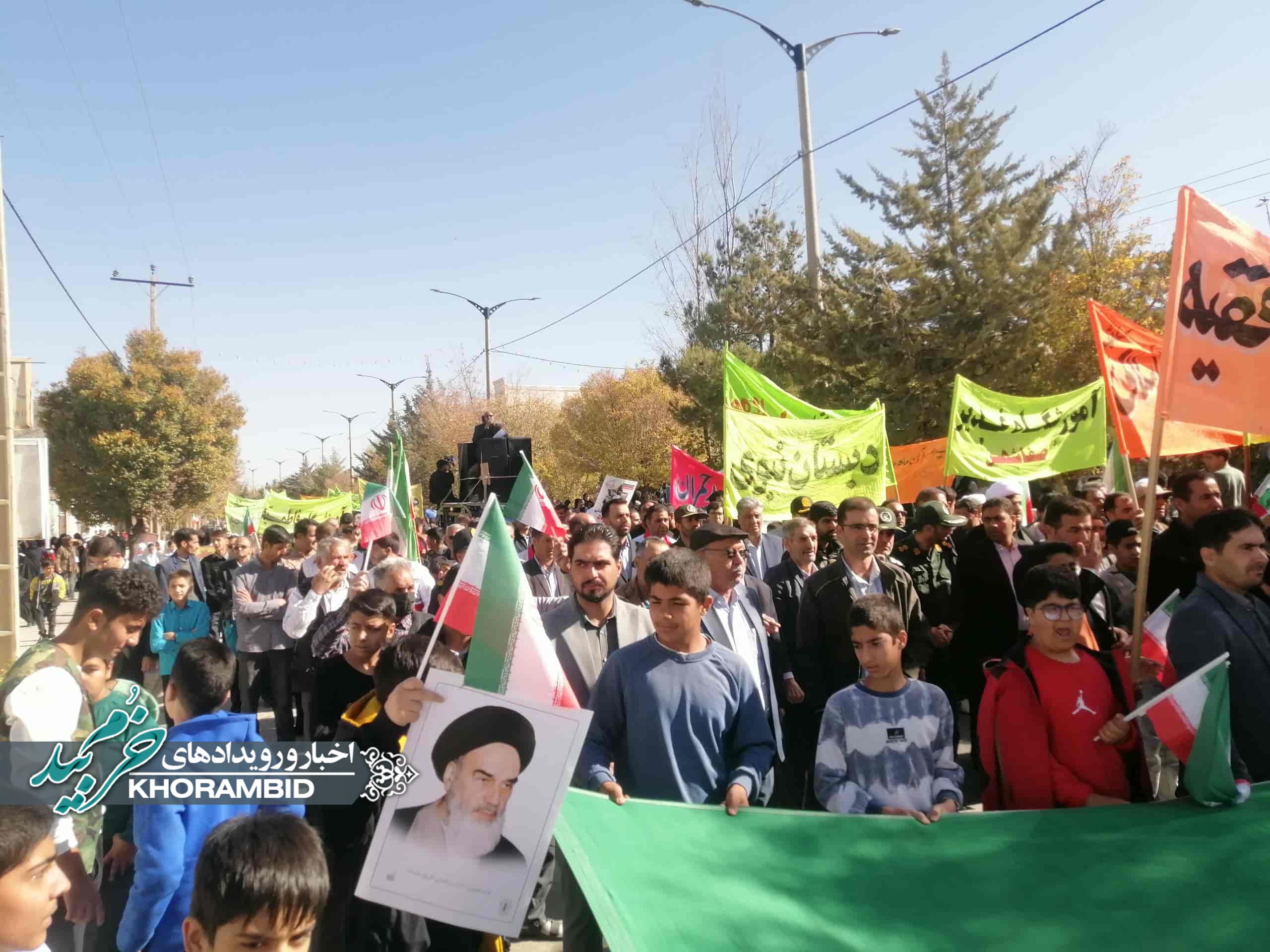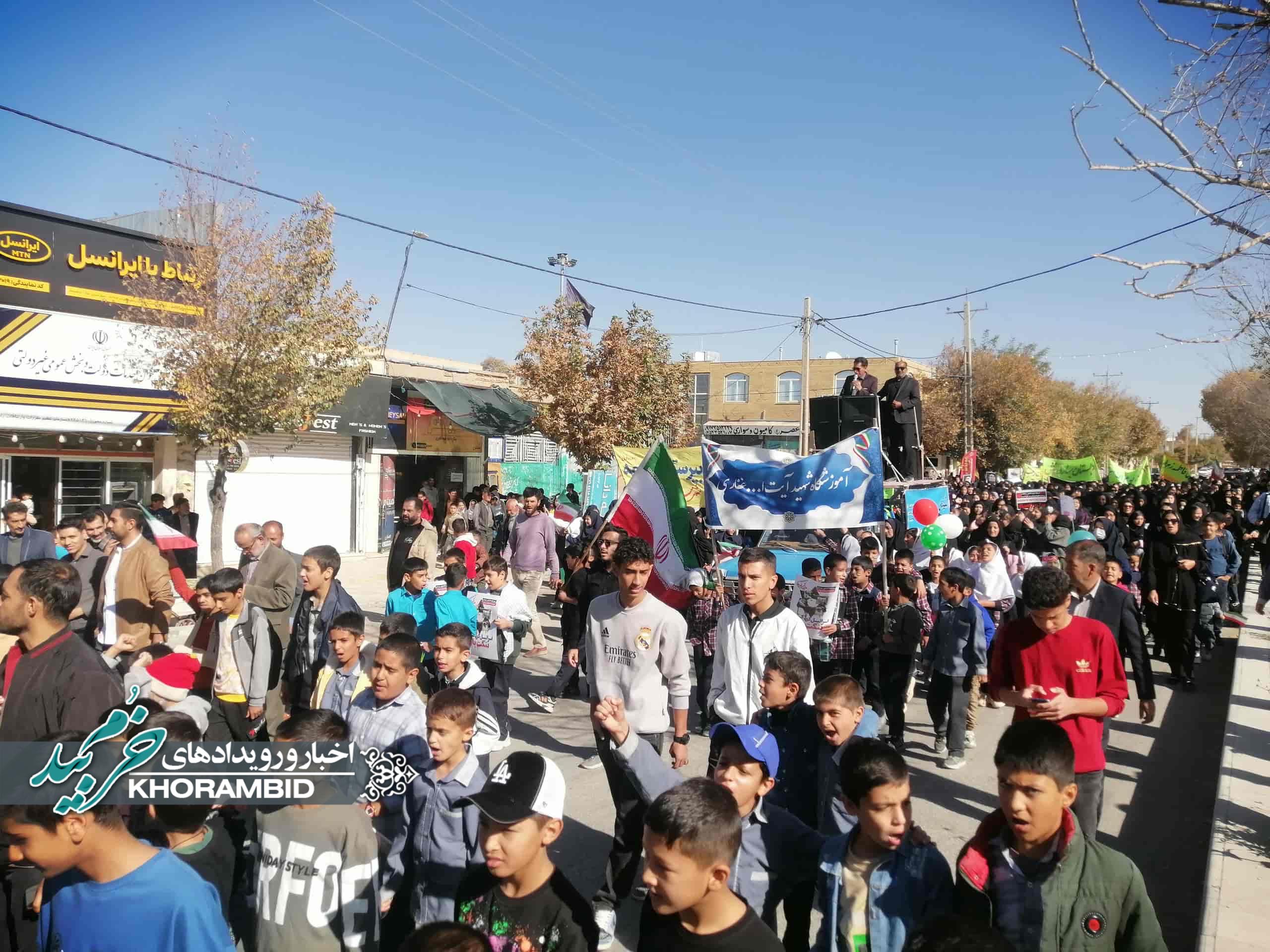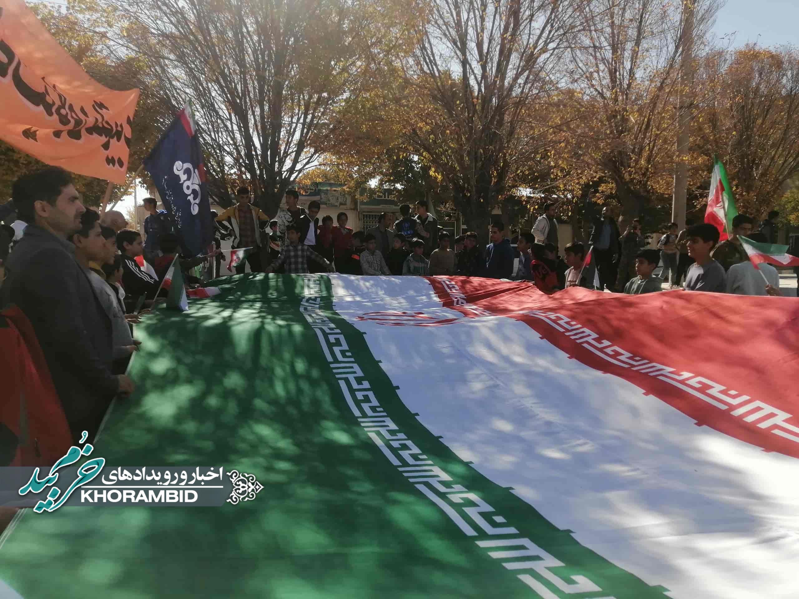 در پایان راهپیمایی، قطعنامه سراسری روز ۱۳ آبان با فریادهای «مرگ بر آمریکا» و «مرگ بر اسرائیل» توسط مردم همیشه در صحنه شهرستان خرمبید قرائت و مورد تأیید شرکتکنندگان قرار گرفت.