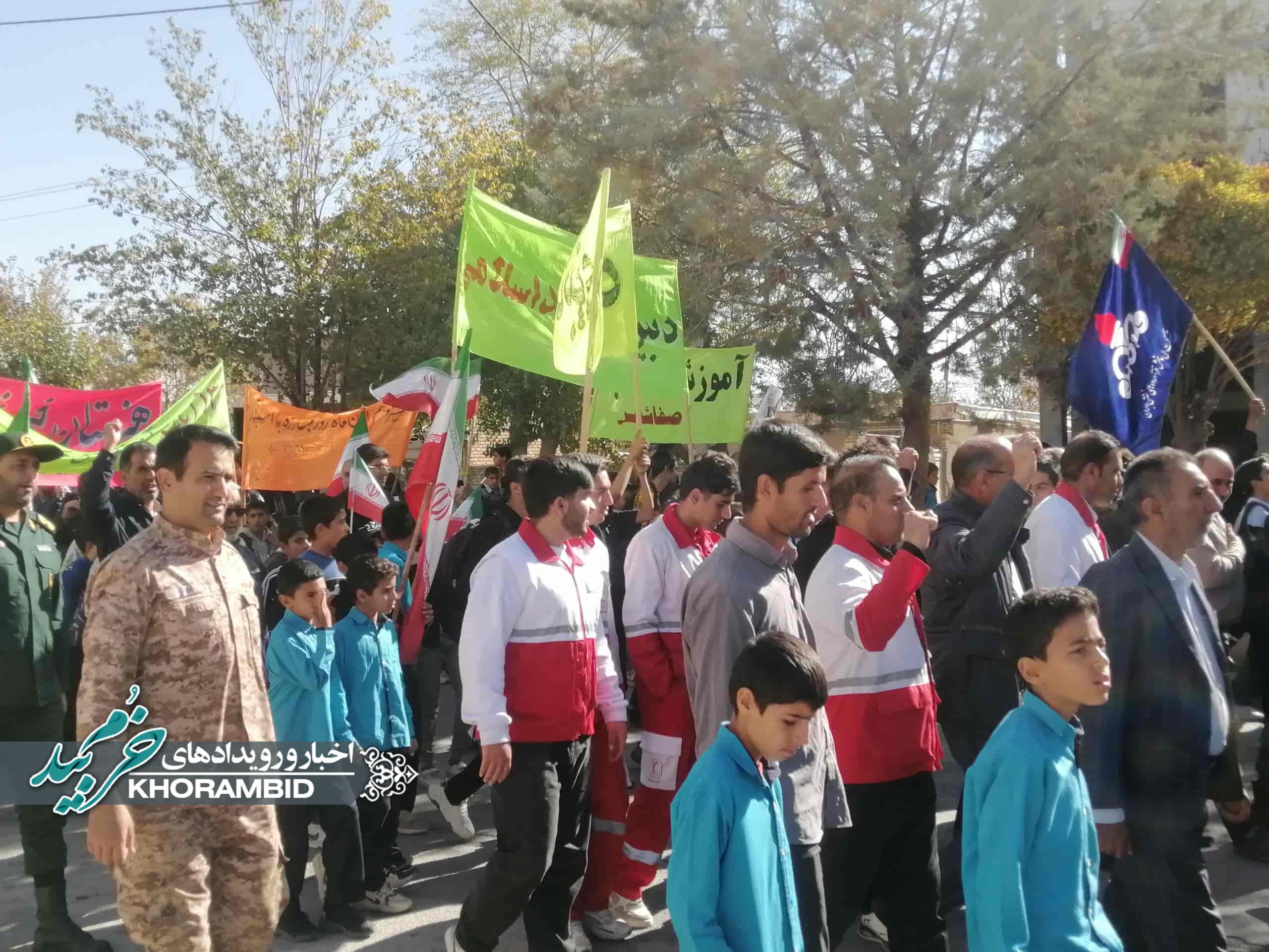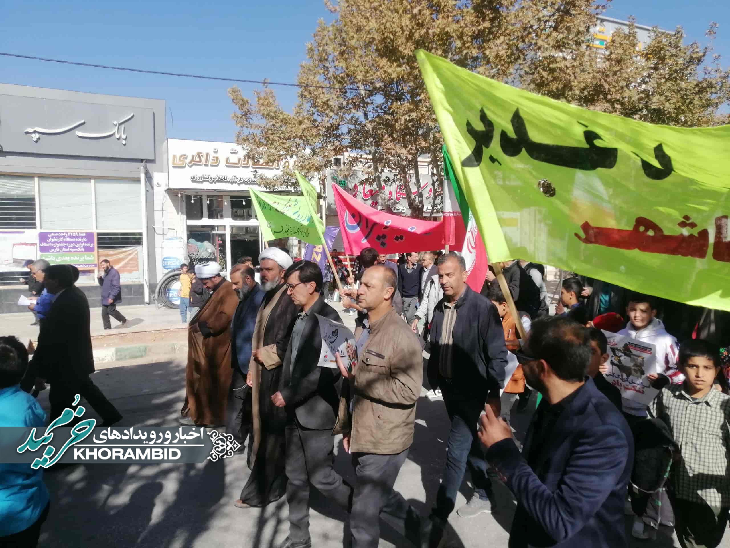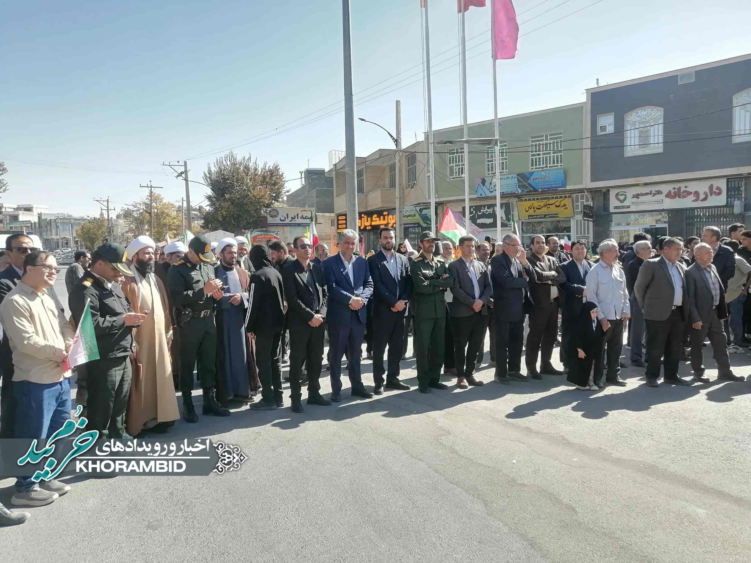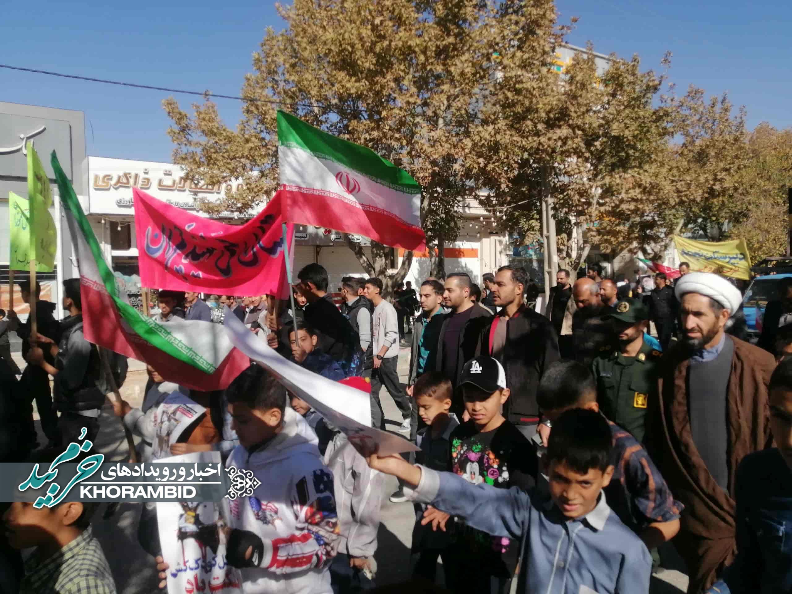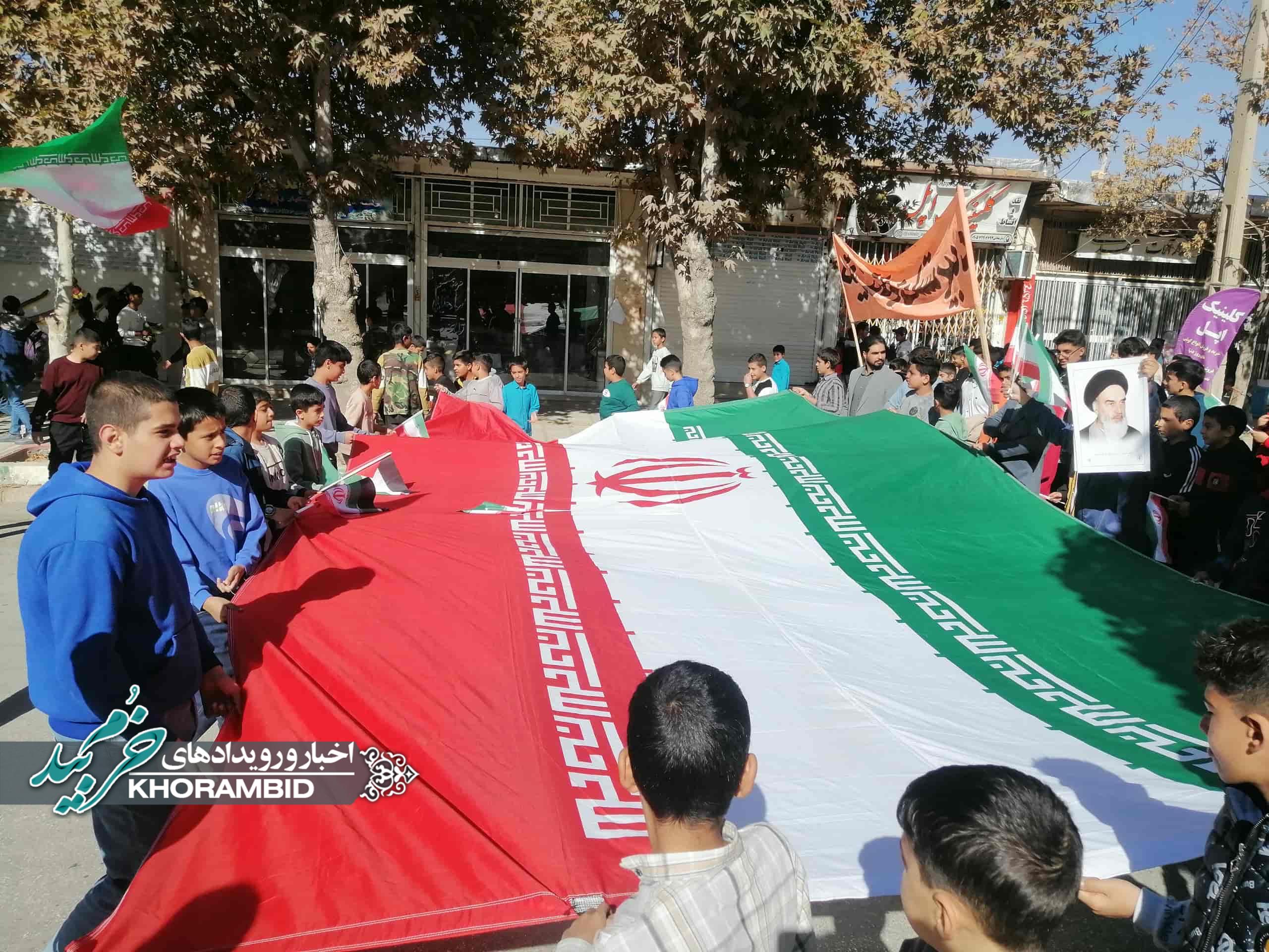 در پایان راهپیمایی، قطعنامه سراسری روز ۱۳ آبان با فریادهای «مرگ بر آمریکا» و «مرگ بر اسرائیل» توسط مردم همیشه در صحنه شهرستان خرمبید قرائت و مورد تأیید شرکتکنندگان قرار گرفت.
