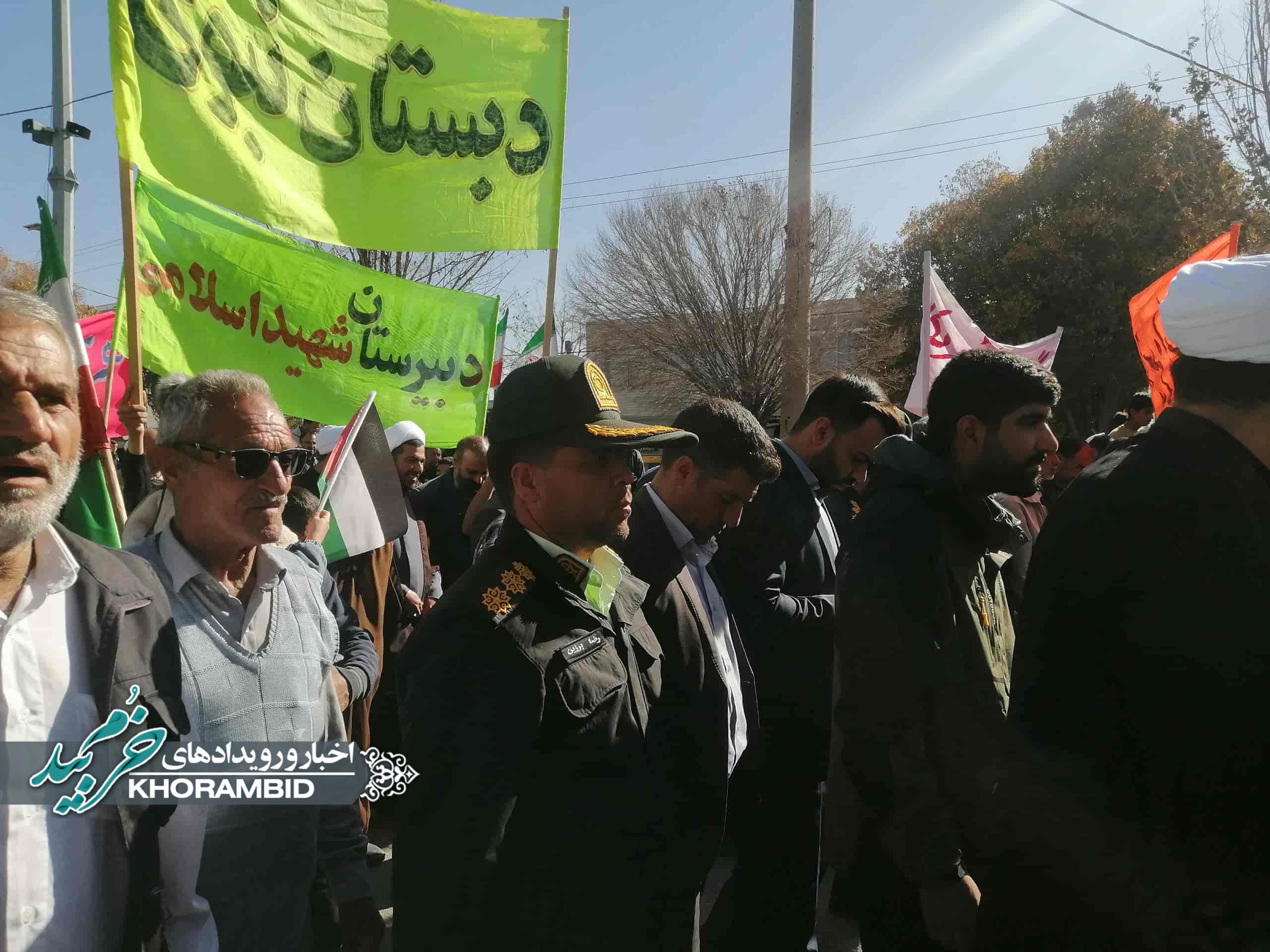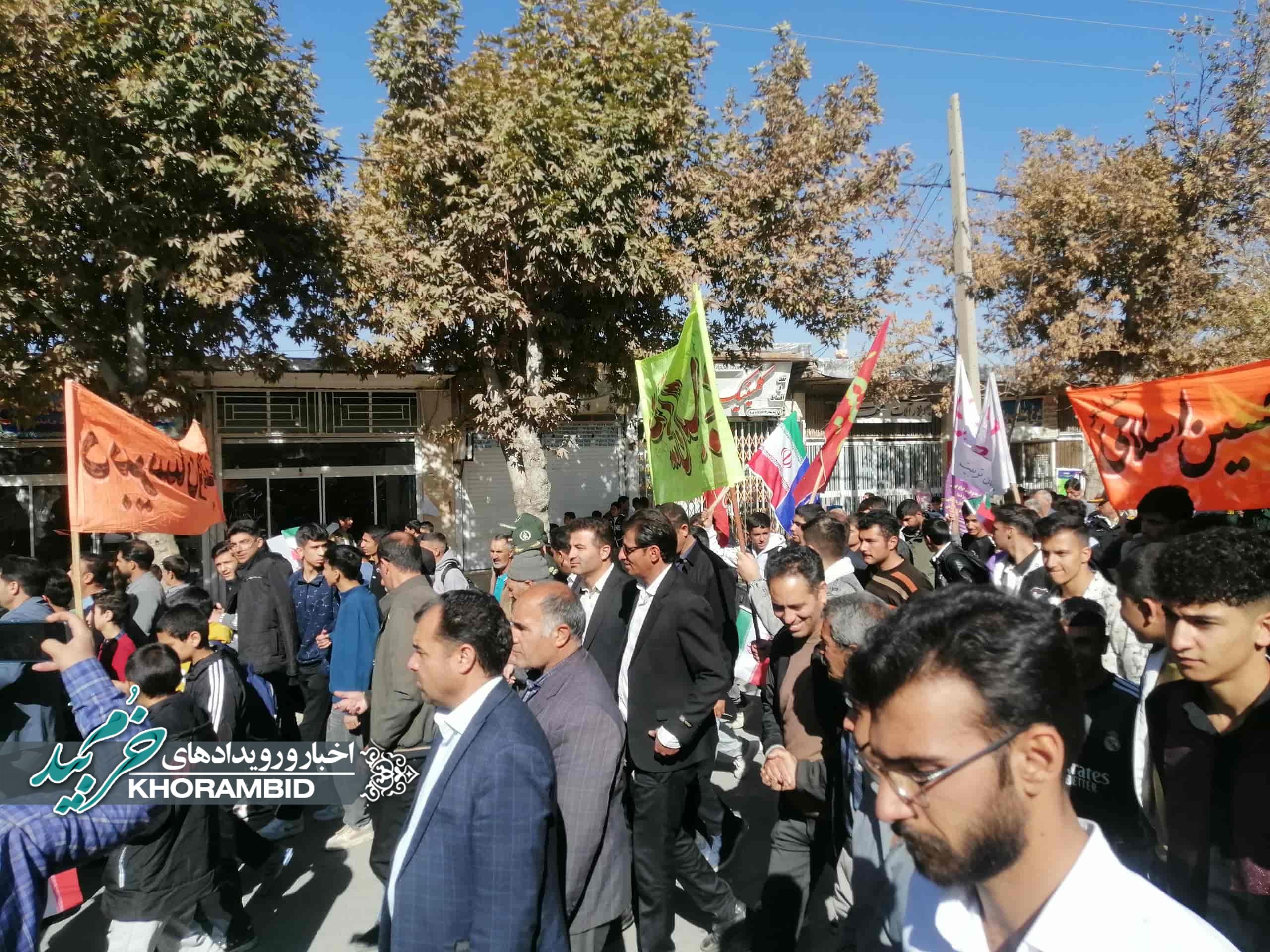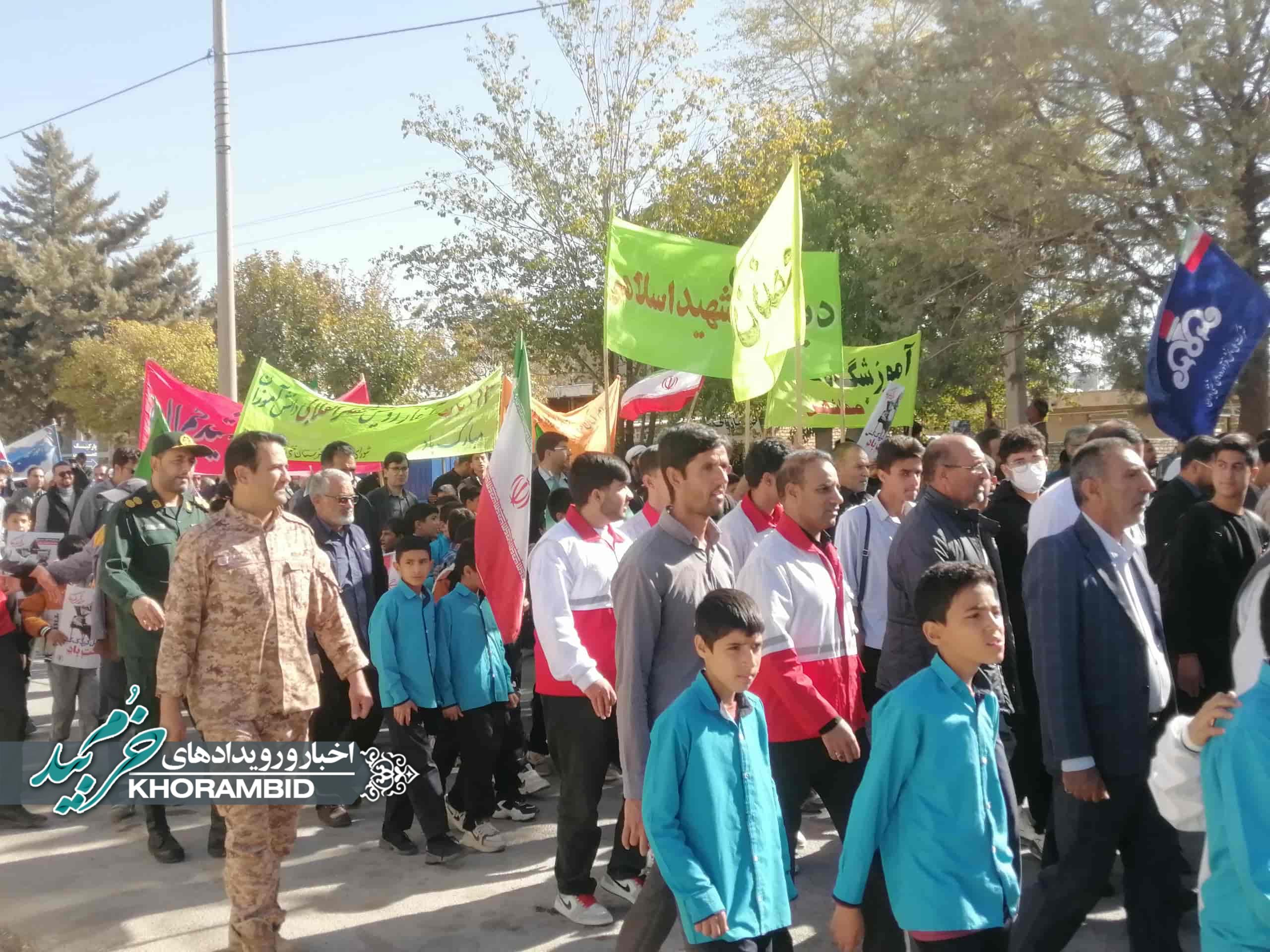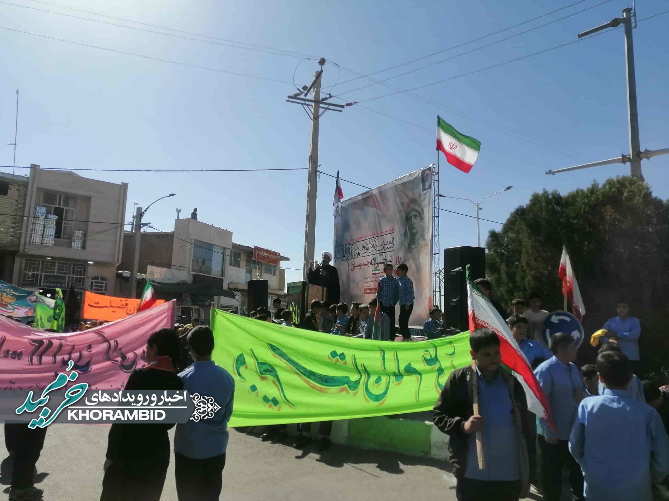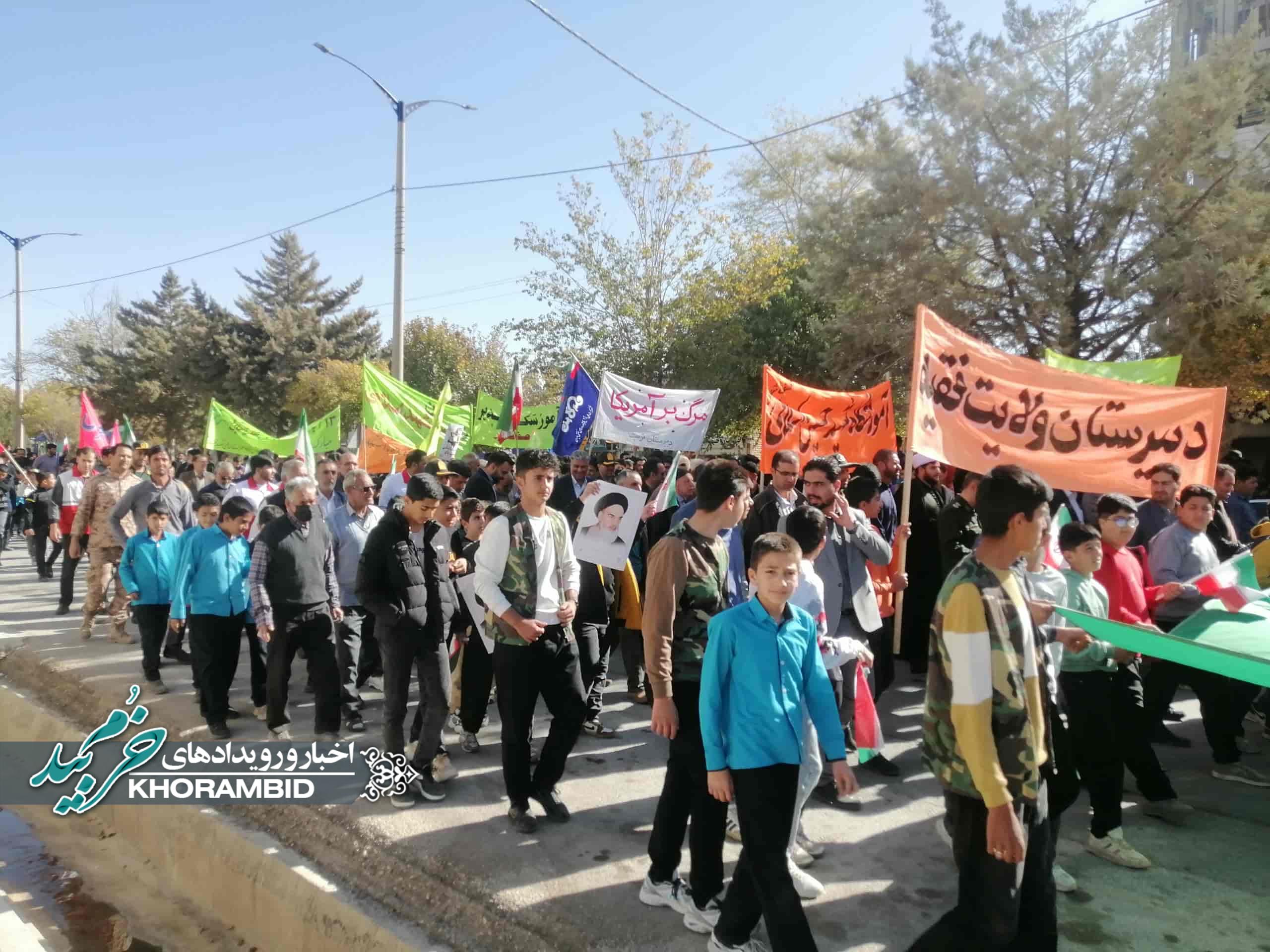 در پایان راهپیمایی، قطعنامه سراسری روز ۱۳ آبان با فریادهای «مرگ بر آمریکا» و «مرگ بر اسرائیل» توسط مردم همیشه در صحنه شهرستان خرمبید قرائت و مورد تأیید شرکتکنندگان قرار گرفت.