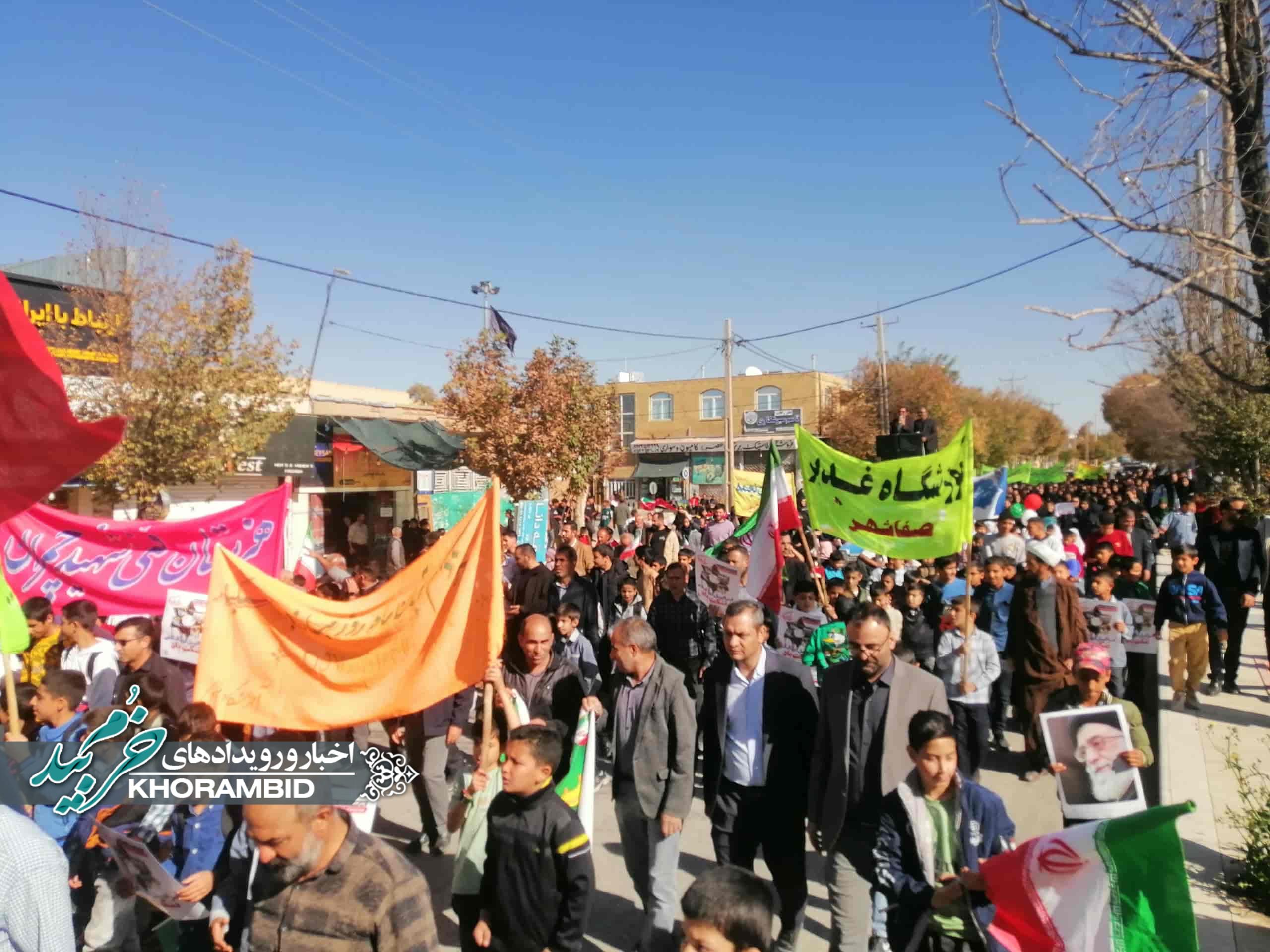 این مراسمها که جمعیتی بالغ بر ۴ هزار نفر در هر دو ناحیه را دربرمیگرفت، جلوهای از وحدت، بصیرت و پایبندی مردم ولایتمدار خرمبید به آرمانهای انقلاب اسلامی و مقام معظم رهبری (مدظلهالعالی) را به نمایش گذاشت.