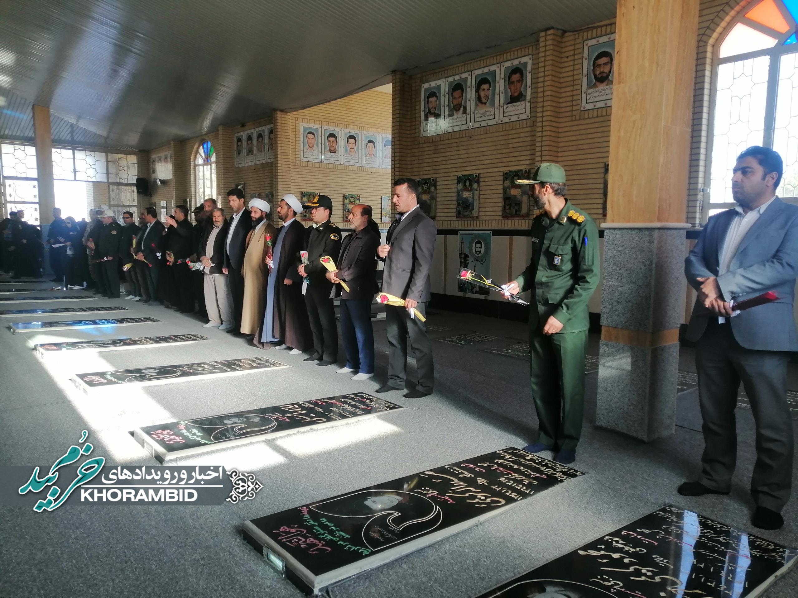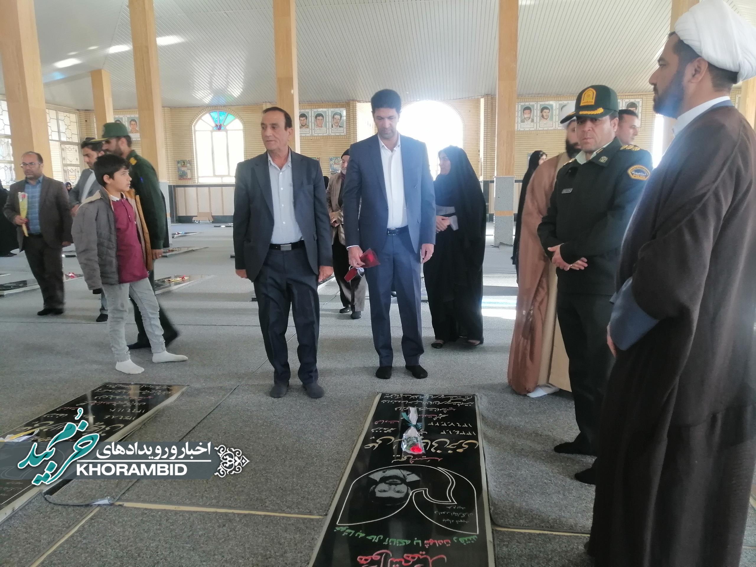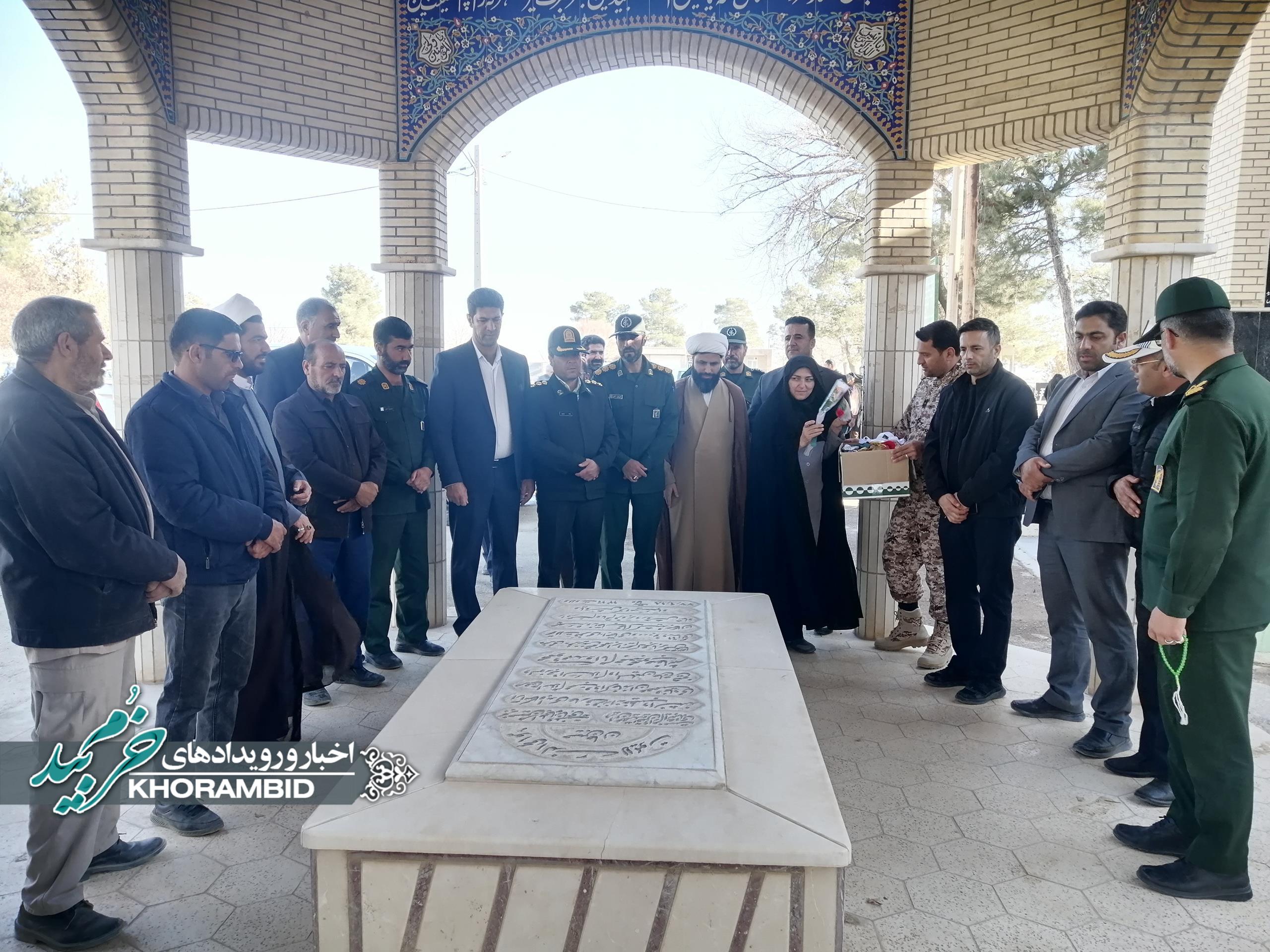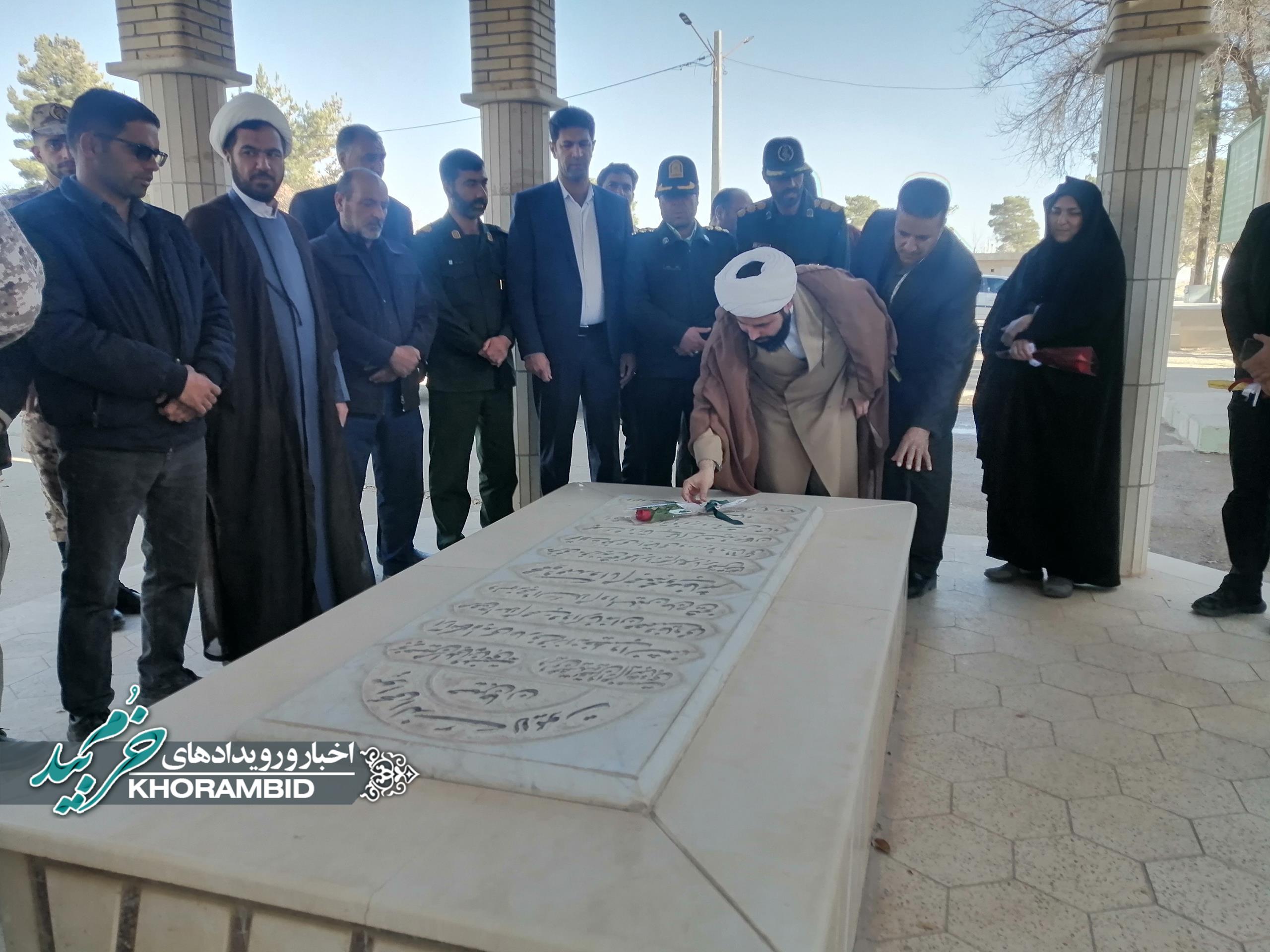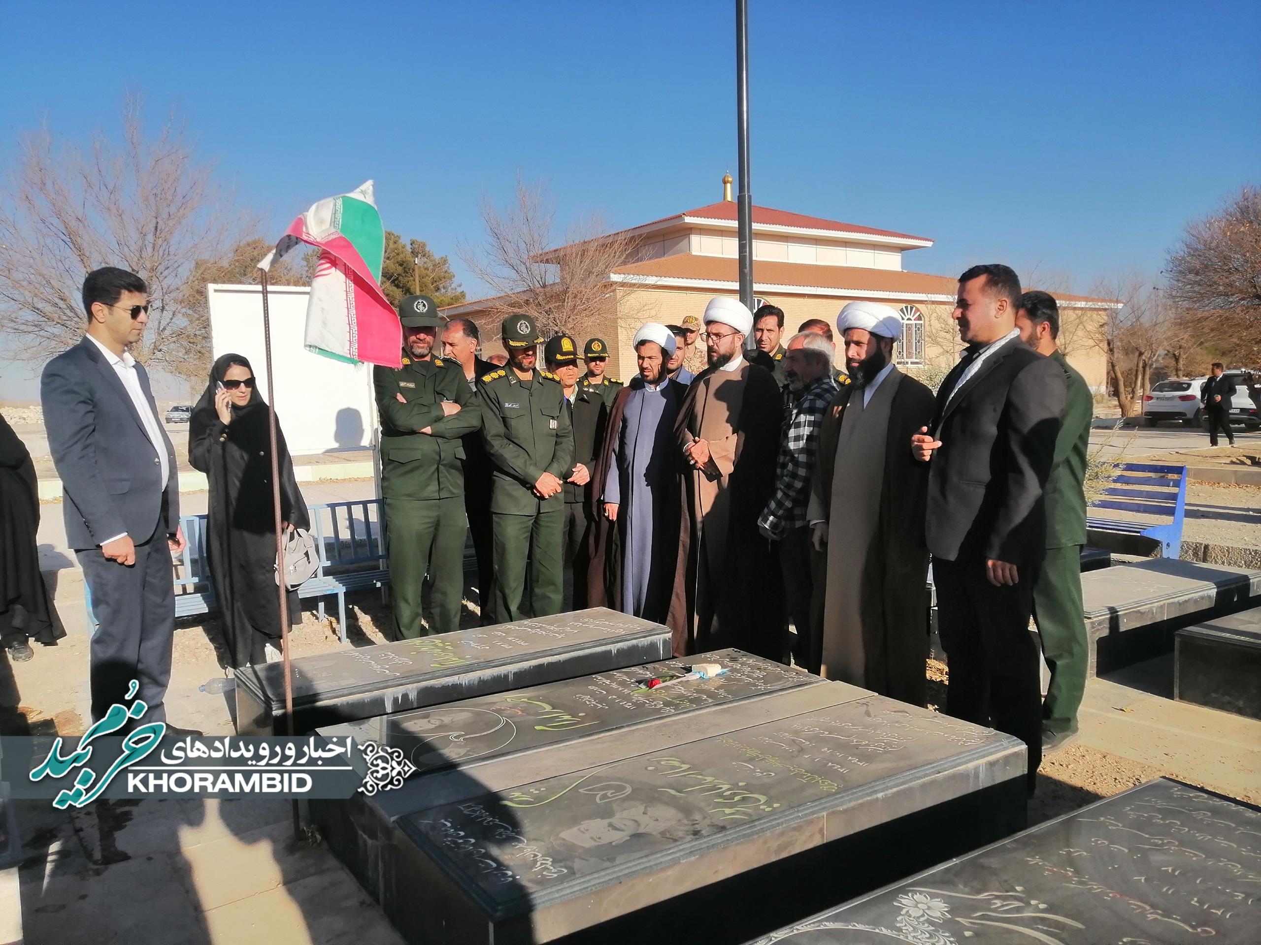 به گزارش روابط عمومی فرمانداری خرمبید، همزمان با هفته بسیج، آیین غبارروبی، عطرافشانی و گلباران قبور مطهر شهدای شهرستان خرمبید با حضور حجتالاسلام والمسلمین ابراهیم دهقان امام جمعه، مجتبی امیری، معاون سیاسی ، امنیتی و اجمتاعی فرمانداری، سرهنگ نظری فرمانده سپاه ناحیه خرم بید، جمعی از مسئولین ادارات و نهادهای شهرستان، بسیجیان و اقشار مختلف مردم برگزار شد.