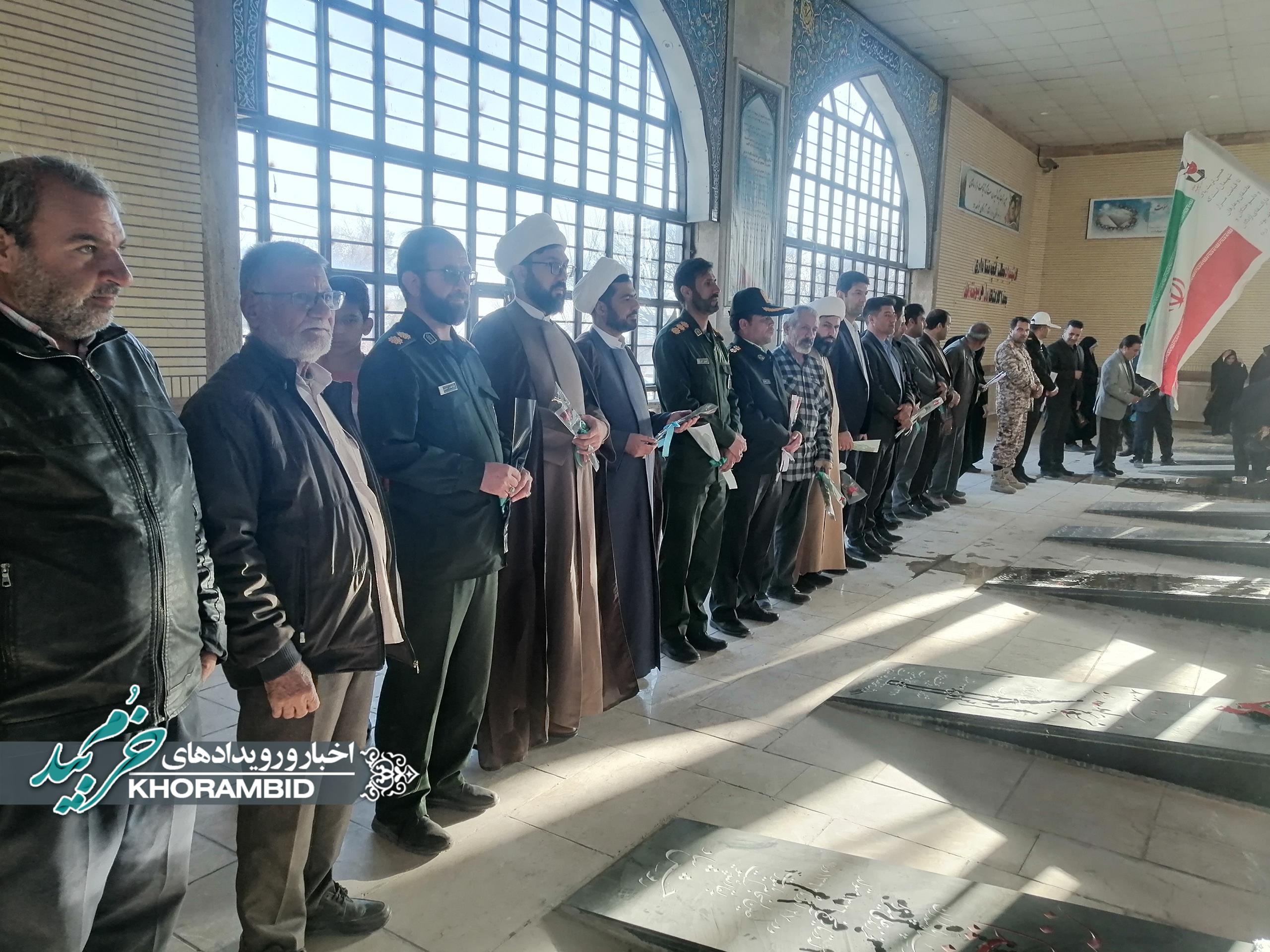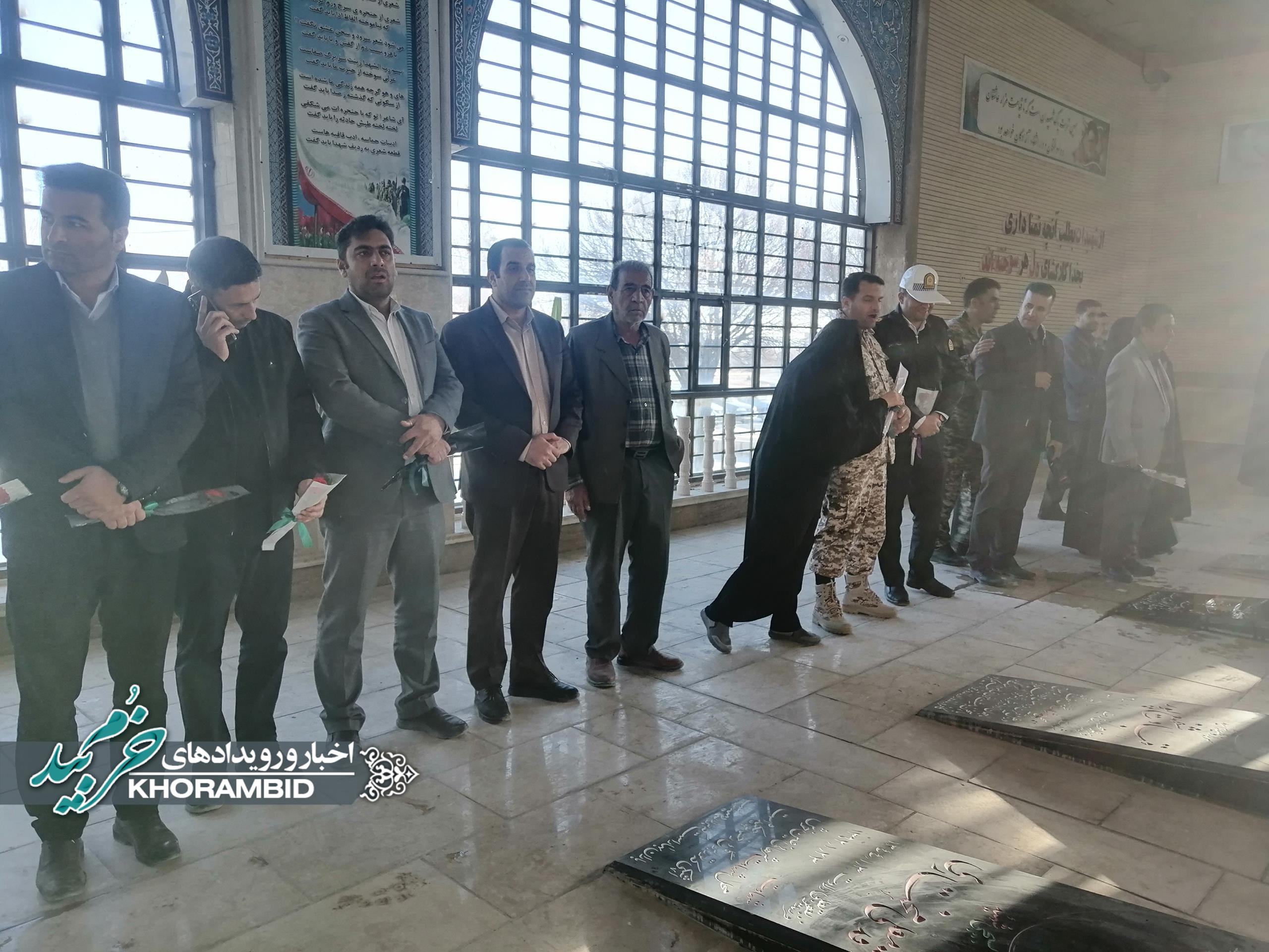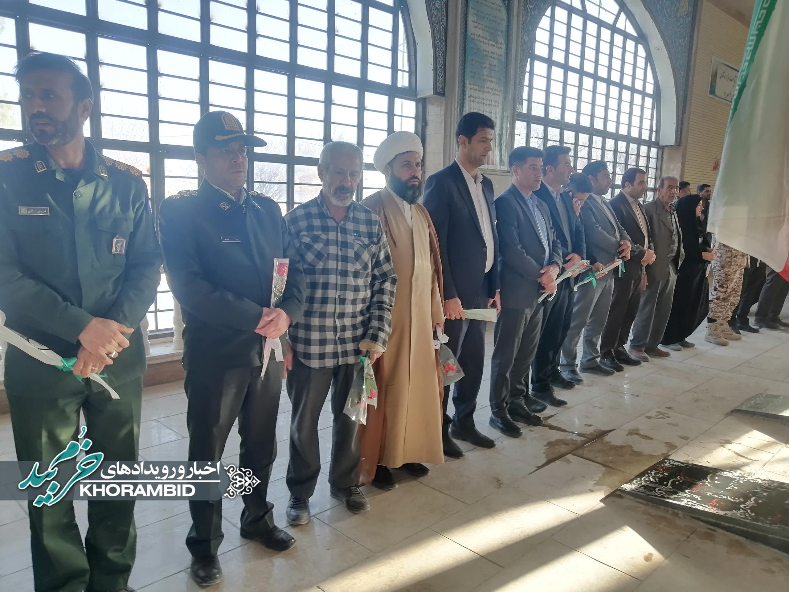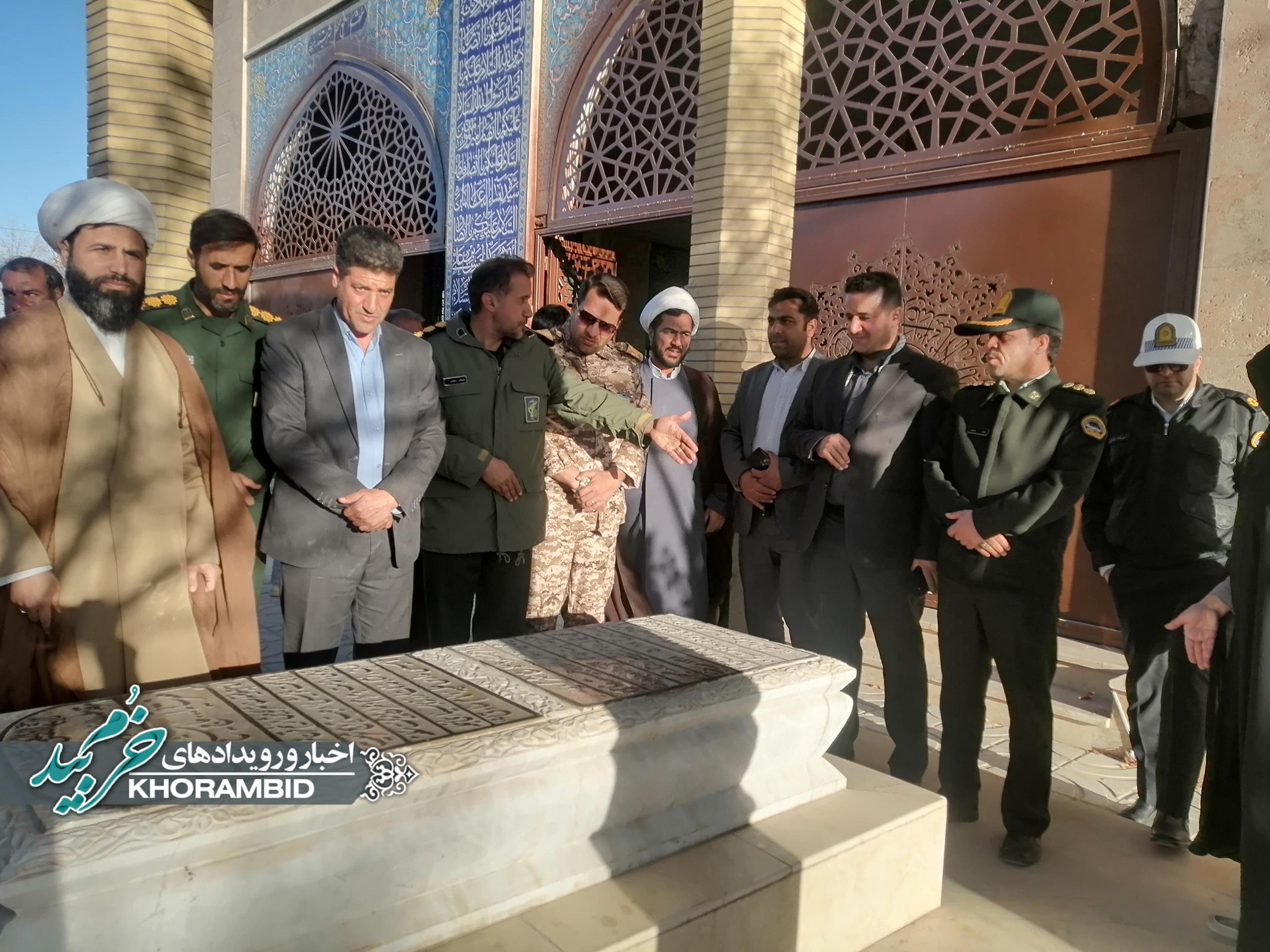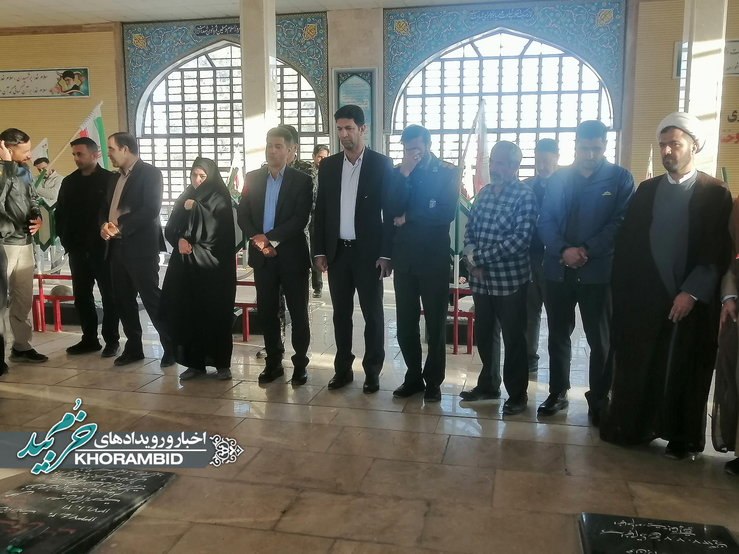 به گزارش روابط عمومی فرمانداری خرمبید، همزمان با هفته بسیج، آیین غبارروبی، عطرافشانی و گلباران قبور مطهر شهدای شهرستان خرمبید با حضور حجتالاسلام والمسلمین ابراهیم دهقان امام جمعه، مجتبی امیری، معاون سیاسی ، امنیتی و اجمتاعی فرمانداری، سرهنگ نظری فرمانده سپاه ناحیه خرم بید، جمعی از مسئولین ادارات و نهادهای شهرستان، بسیجیان و اقشار مختلف مردم برگزار شد.