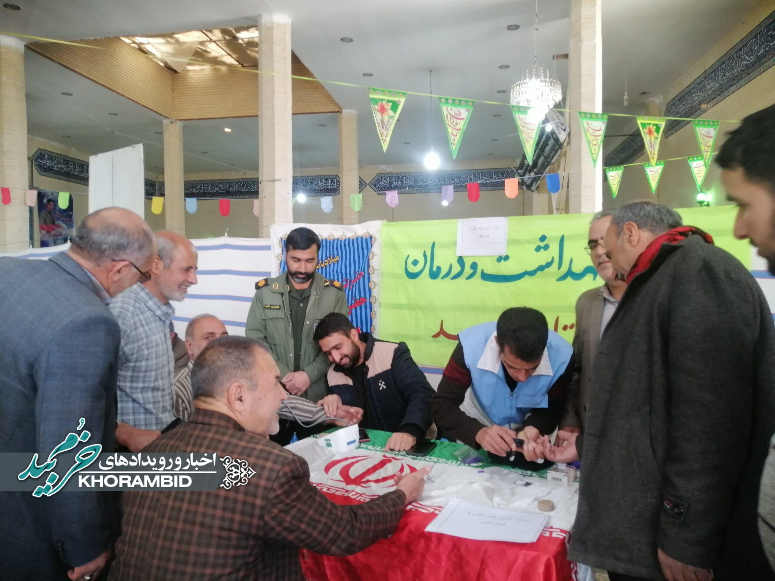 میز خدمت شبکه بهداشت و درمان شهرستان خرم بید در محل مسجد جامع حضرت ولیعصر عجل الله صفاشهر همزمان با اولین روز از دهه مبارک فجر انقلاب اسلامی با خدماتی همچون اندازهگیری فشار خون و قند خون با دستگاه گلوکومتر در همان مکان انجام شد.