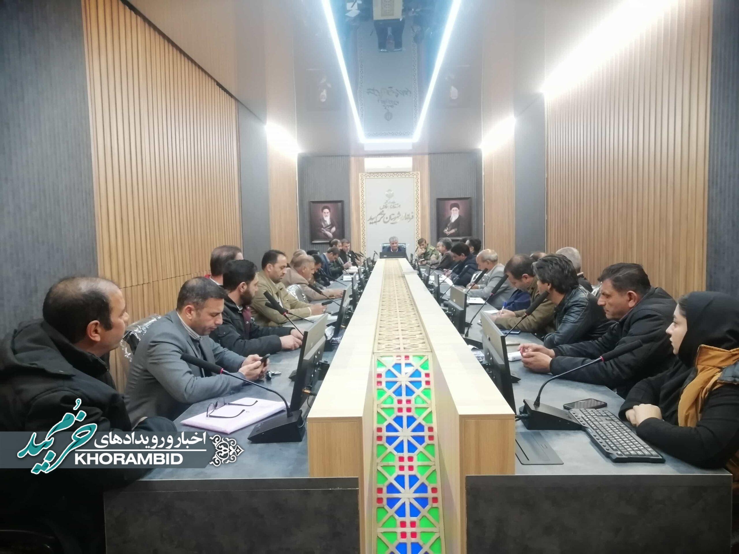 جلسه ی کارگروه تسهیل و رفع موانع تولید و تسهیل سرمایه گذاری شهرستان خرم بید در سال ۱۴۰۳ به ریاست همتی نفر فرماندار شهرستان و سایر مسئولان ادارات ونهادهای مرتبط وتعدادی از سرمایه گذاران در محل سالن جلسات فرمانداری تشکیل گردید.