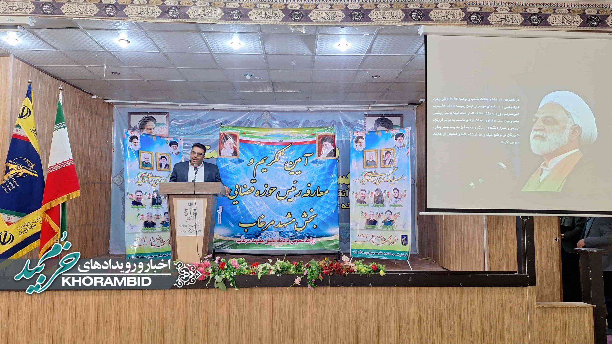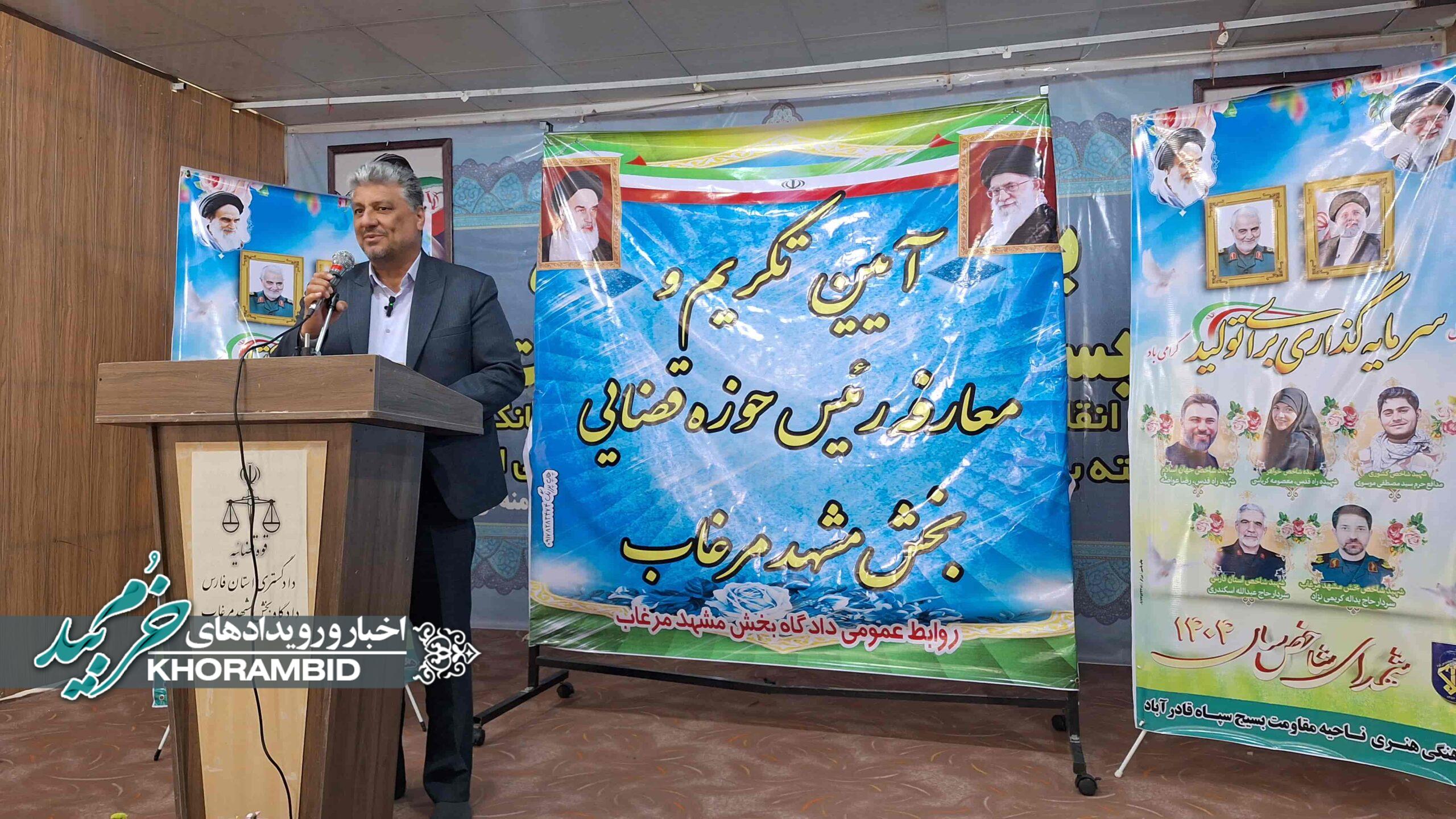 وی در ادامه گفت مسیر دستگاه قضایی مسیری کاملا روشن و برنامه ریزی شده است که خیلی جزیی در سند تحول قضایی که توسط ریاست محترم قوه قضاییه ابلاغ شده و به تایید مقام معظم رهبری هم رسیده : راها ، اهداف و مسیرها مشخص شده می باشد که این ابلاغ به تمام حوزه های قضایی از جمله مشهدمرغاب می باشد ، به این معنی می باشد که تمام همکاران قضایی می دانند وظیفه چیست مسیر چیست و نحوه رسیدن به هدف چه می باشد.