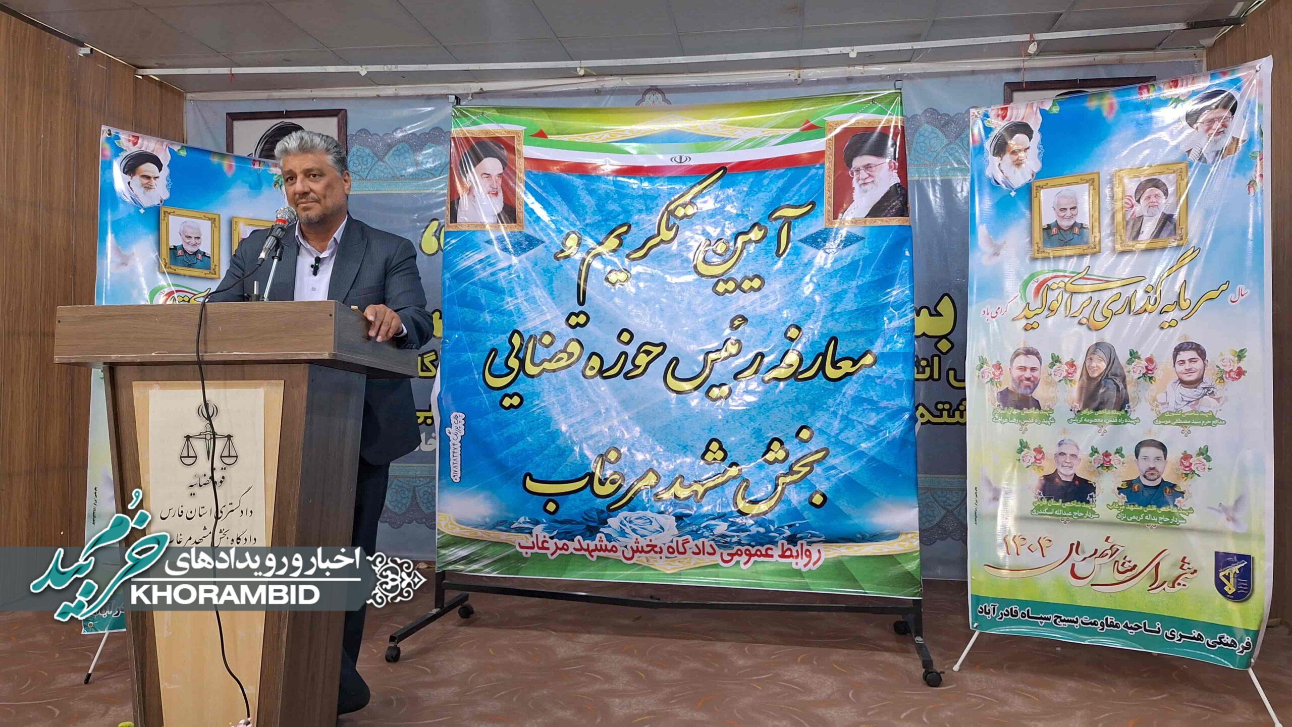 به گزارش روابط عمومی بخشداری مشهدمرغاب آیین تکریم و معارفه رئیس حوزه قضایی بخش مشهدمرغاب با حضور مرتضوی معاون محترم قضایی رئیس کل و نماینده دادسرای در امور نظارت و ارزشیابی قضات دادگستری استان فارس ، همتی نفر فرماندار شهرستان خرم بید ،بخشدار مشهدمرغاب، امام جمعه بخش قادرآباد، اعضای شورای تامین شهرستان و کمیته امنیتی بخش ، روحانیون معزز ، روسای دادگاه های شهرستان های همجوار برگزار گردید.